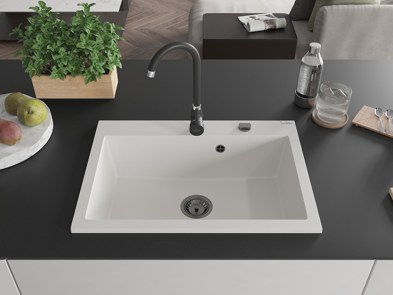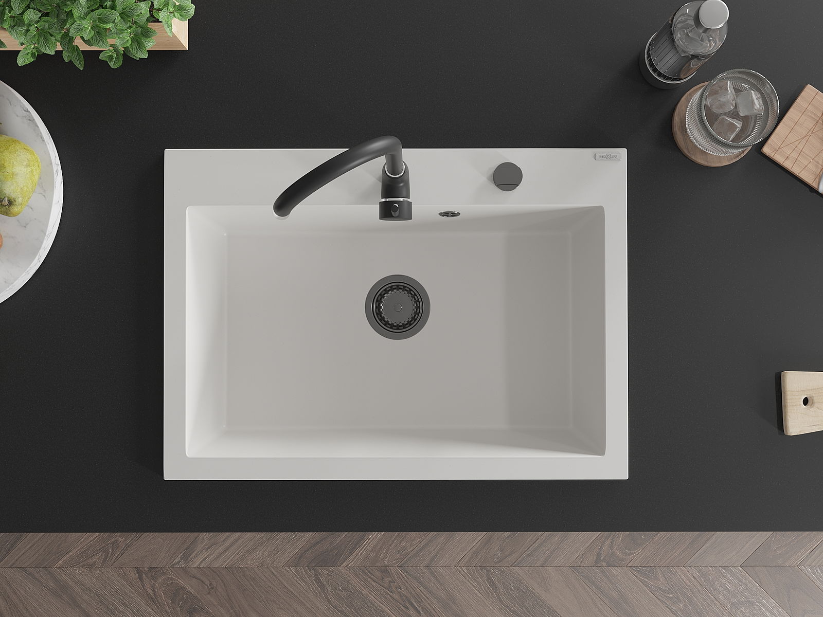 The surface of the sink is resistant to stains and discolouration, making it easy to maintain cleanliness and retain its colour for a long time of use. An aesthetic and practical addition to any kitchen.