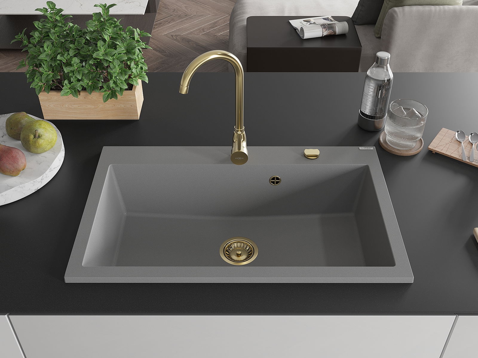 The surface of the sink is resistant to stains and discolouration, making it easy to maintain cleanliness and retain its colour for a long time of use. An aesthetic and practical addition to any kitchen.