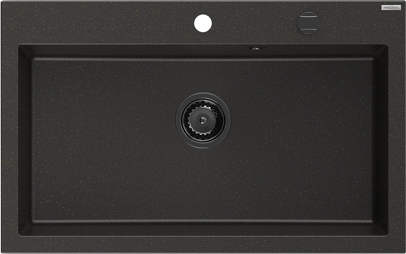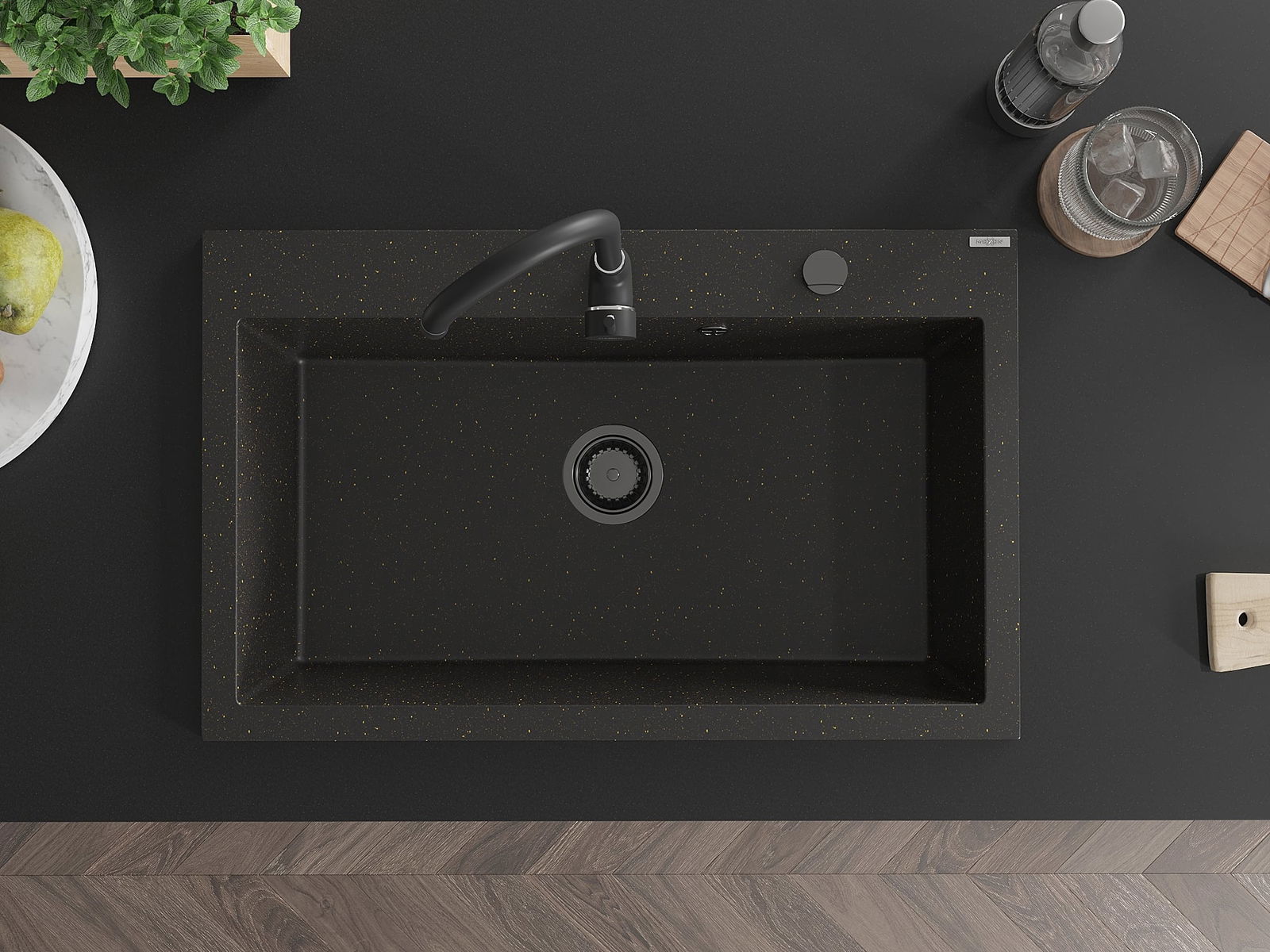 Mexen Elix granite sink 1-bowl 800 x 500 mm, black/golden metallic, black siphon - 6527801005-75-B