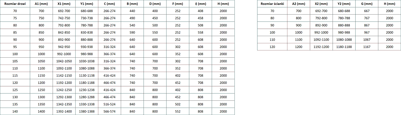 Size: 120x70 cm (right door 120 cm, wall 70 cm)