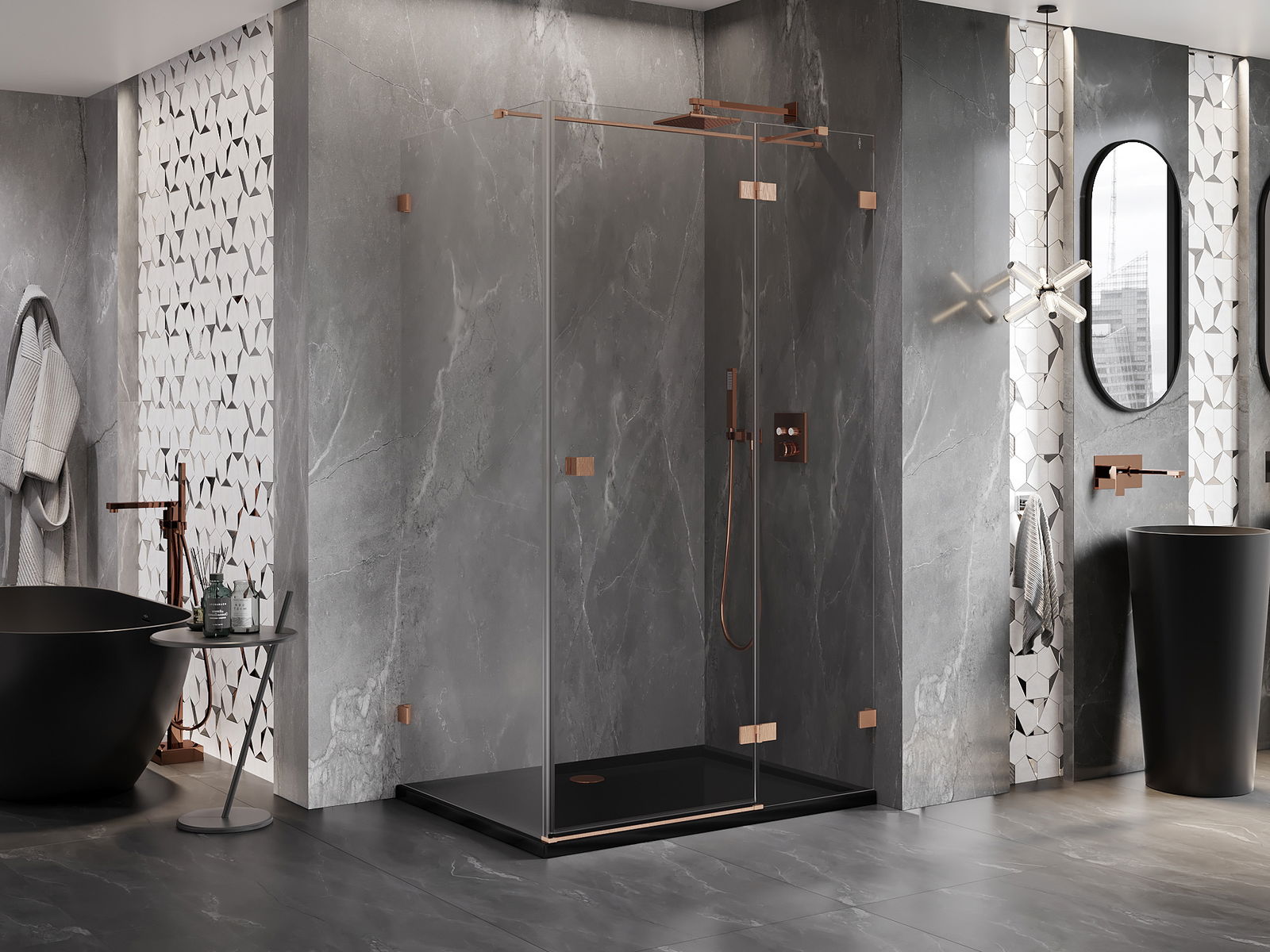 Mexen Lunar T 130 x 100 cm Right Hinged Shower Enclosure, Transparent, Brushed Copper - 834T-130-100-65-00-P