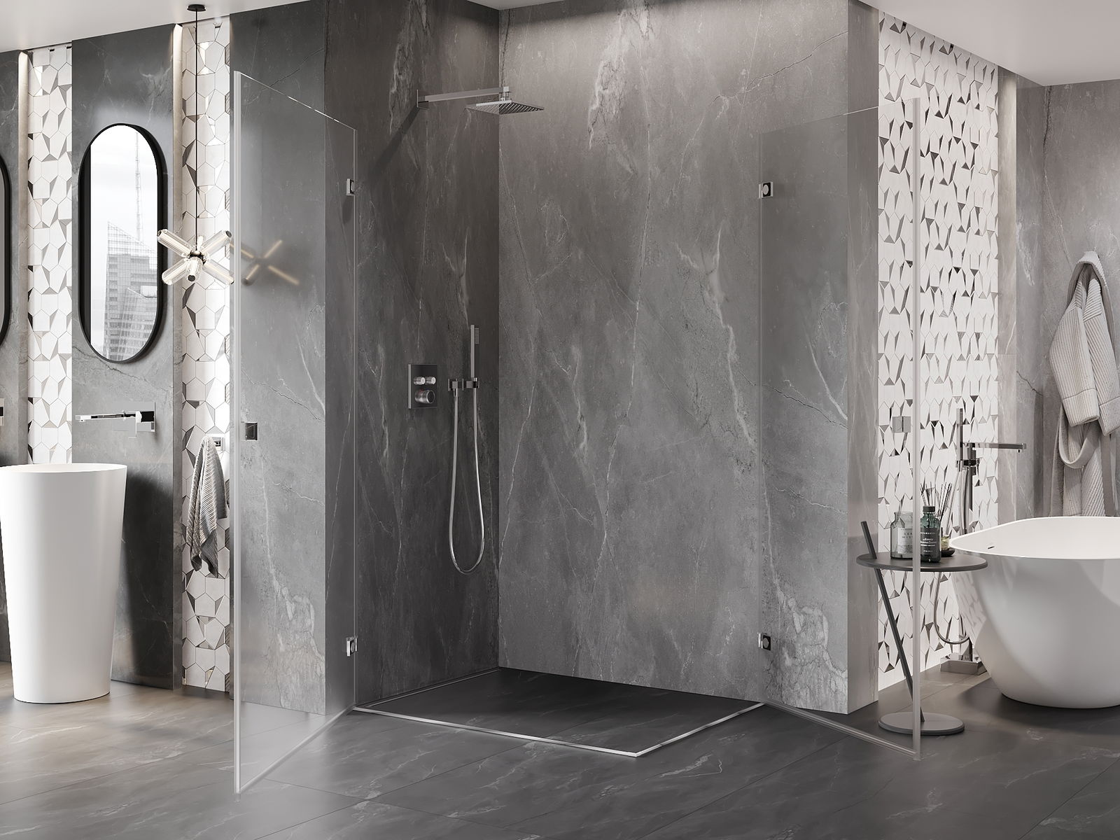 A handy and comfortable handle made from durable and resistant metal. Its trendy shape combined with a finish matched to the colour of the profiles gives the whole a modern and stylish look, highlighting the aesthetics of every bathroom.
