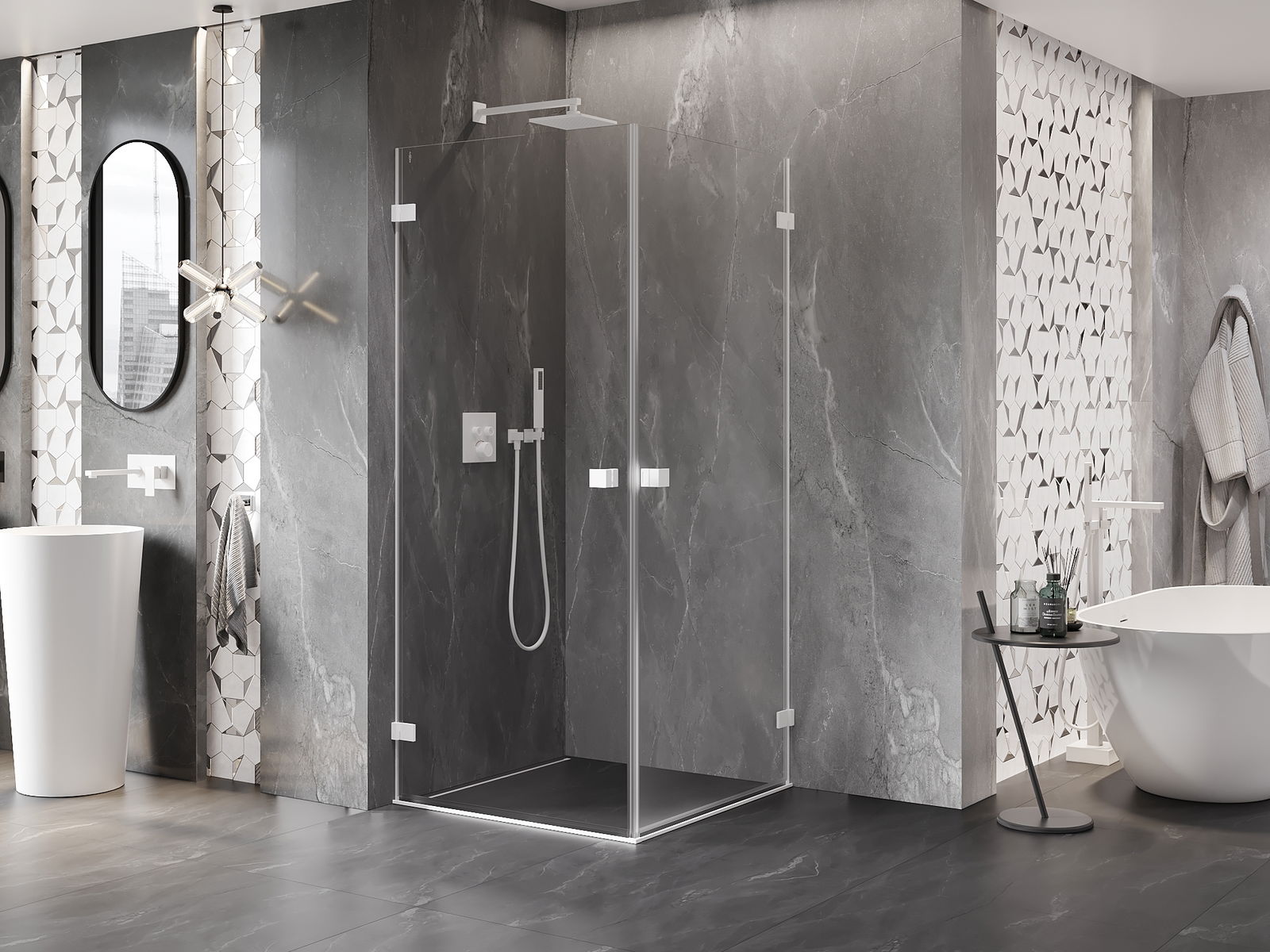Mexen Lunar-B Duo Hinged Shower Enclosure 85 x 85 cm, Transparent, White - 832-085L-085P-20-00