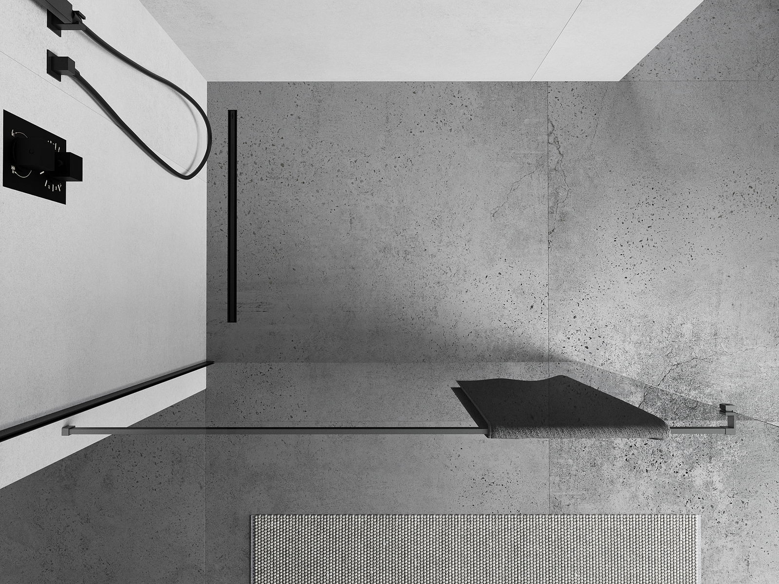 A towel rail mounted on the shower screen is a practical and functional solution that allows for convenient hanging of towels in the immediate vicinity of the bathing area, which increases the comfort of everyday use.