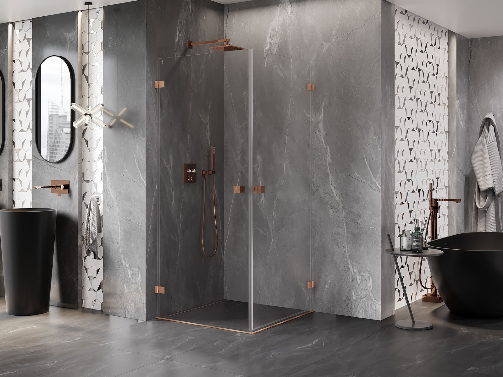 A handy and comfortable handle made from durable and resistant metal. Its trendy shape combined with a finish matched to the colour of the profiles gives the whole a modern and stylish look, highlighting the aesthetics of every bathroom.
