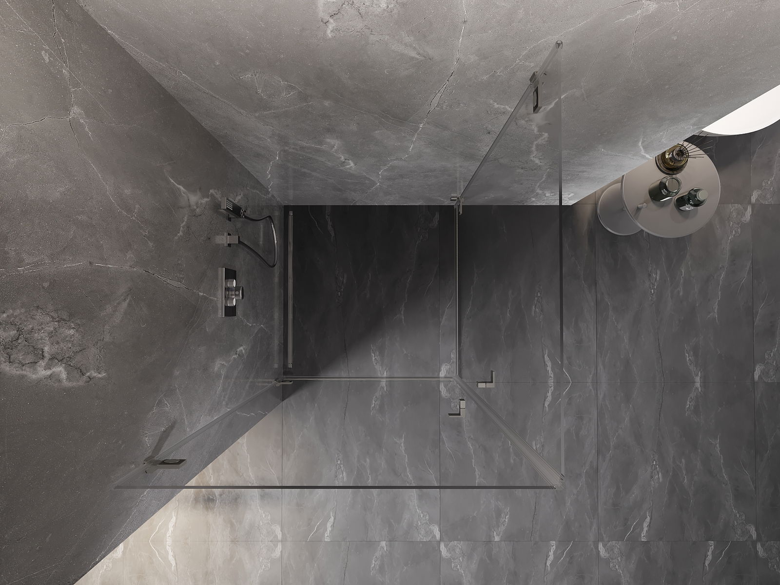 Mexen Lunar-B Duo 100 x 100 cm Hinged Shower Cabin, Transparent, Brushed Nickel - 832-100L-100P-97-00