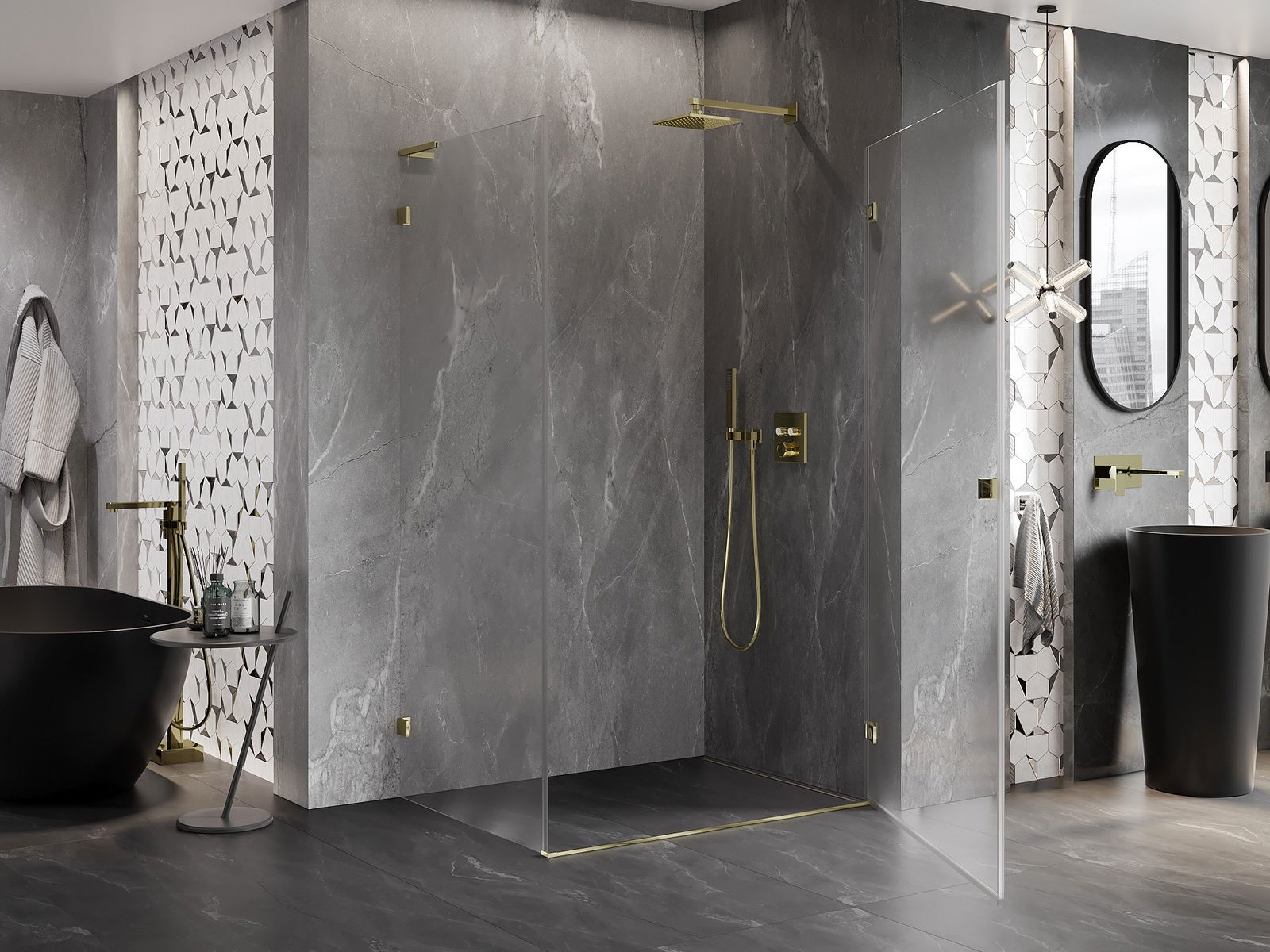 Mexen Lunar-B L Right Hinged Shower Enclosure 80 x 70 cm, Transparent, Gold - 832L-080-070-50-00-P