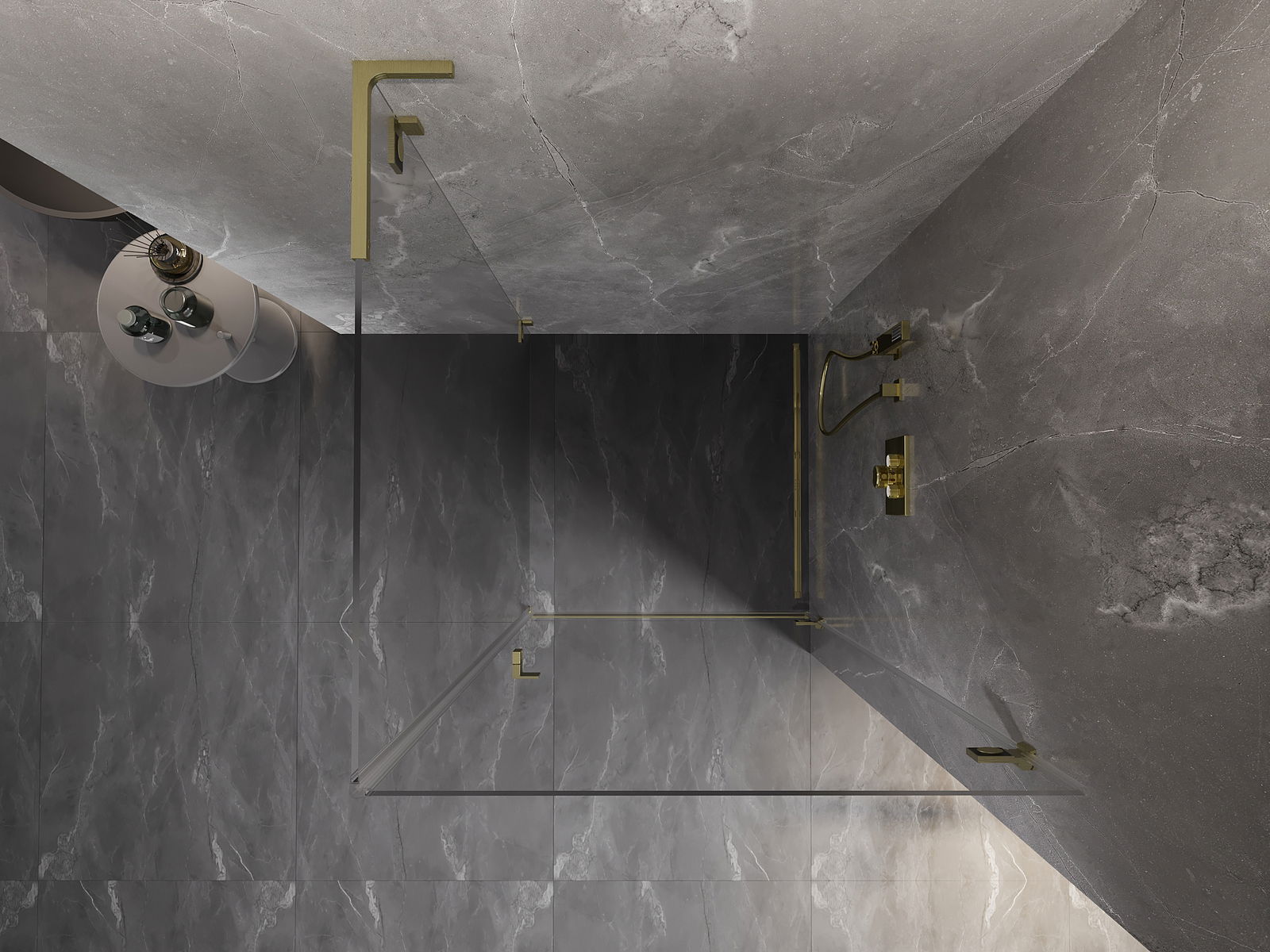Mexen Lunar-B L right pivot shower enclosure 90 x 90 cm, transparent, brushed gold - 832L-090-090-55-00-P
