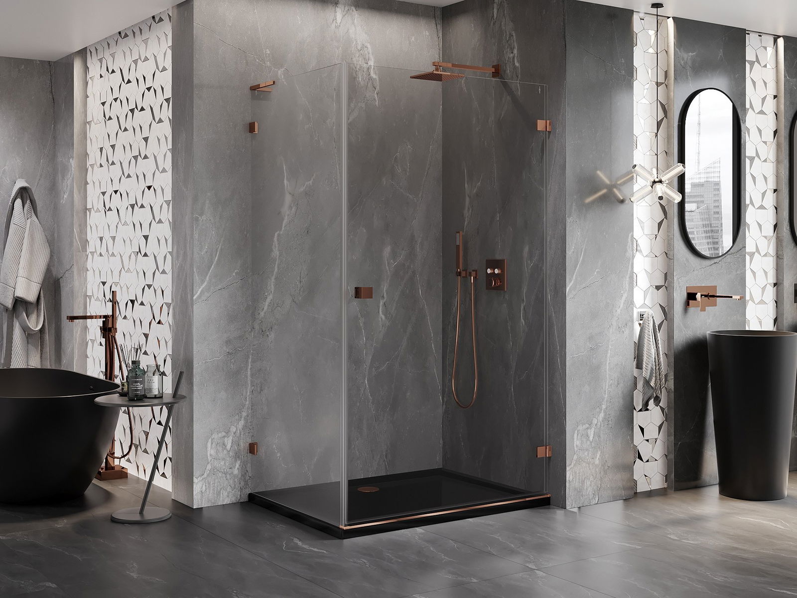 Mexen Lunar-B L Right-Hand Hinged Shower Enclosure 100 x 70 cm, Transparent, Rose Gold - 832L-100-070-60-00-P