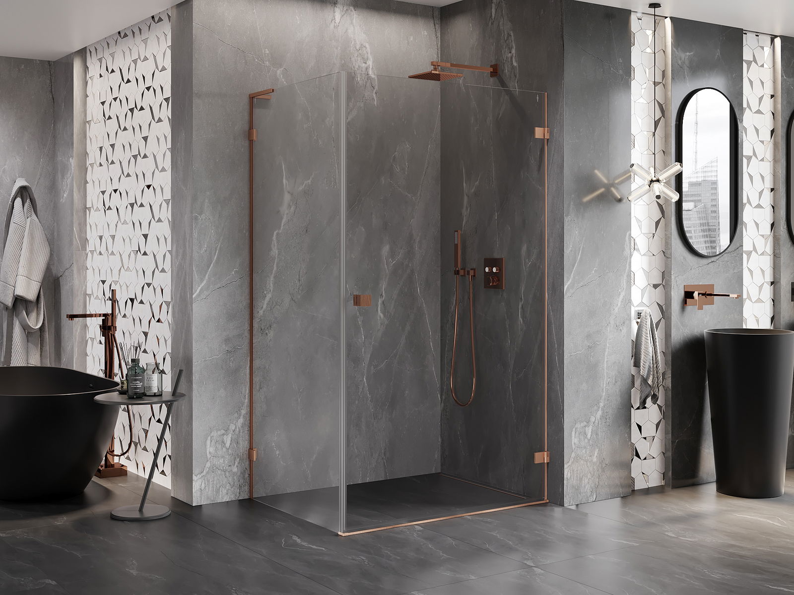 Mexen Lunar-B L Right Hinged Shower Enclosure 75 x 70 cm, Transparent, Brushed Copper - 832L-075-070-65-00-P