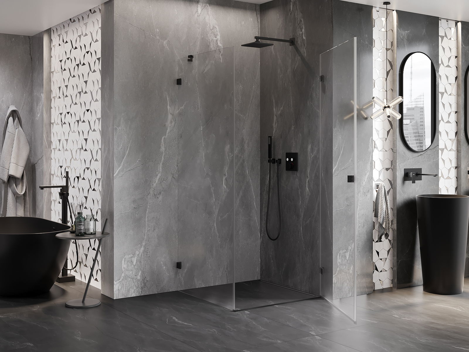 A handy and comfortable handle made from durable and resistant metal. Its trendy shape combined with a finish matched to the colour of the profiles gives the whole a modern and stylish look, highlighting the aesthetics of every bathroom.