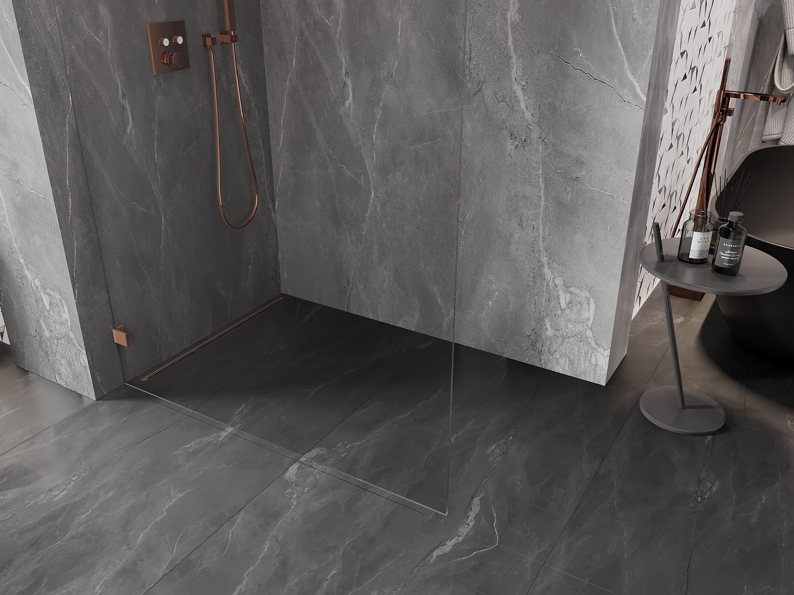 Mexen Lunar Shower Wall Walk-in Left 130 x 200 cm, Transparent 8 mm, Brushed Copper - 830-130-000-65-00-L