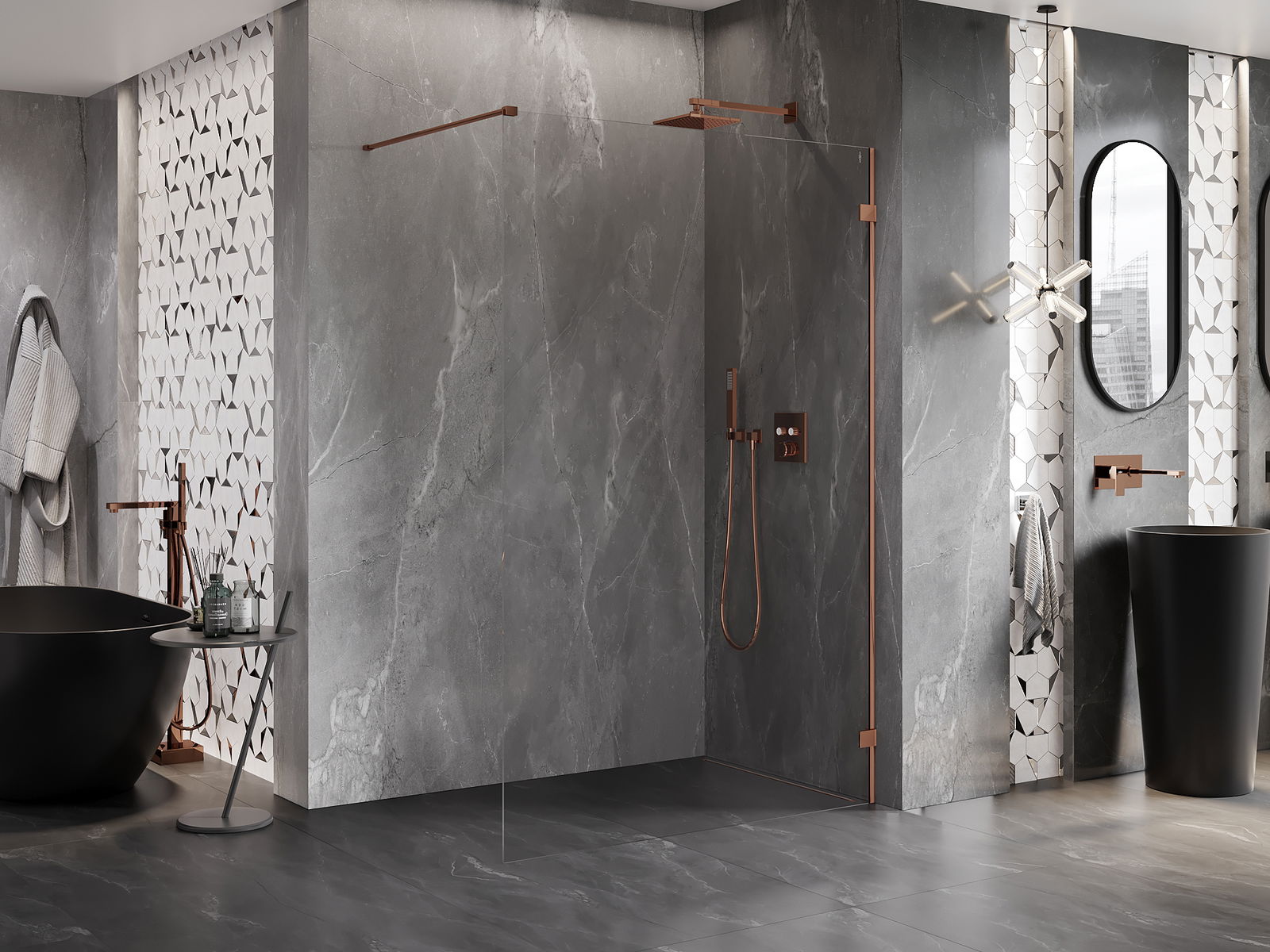 Mexen Lunar Shower Wall Walk-in Right 140 x 200 cm, Transparent 8 mm, Rose Gold - 830-140-000-60-00-P
