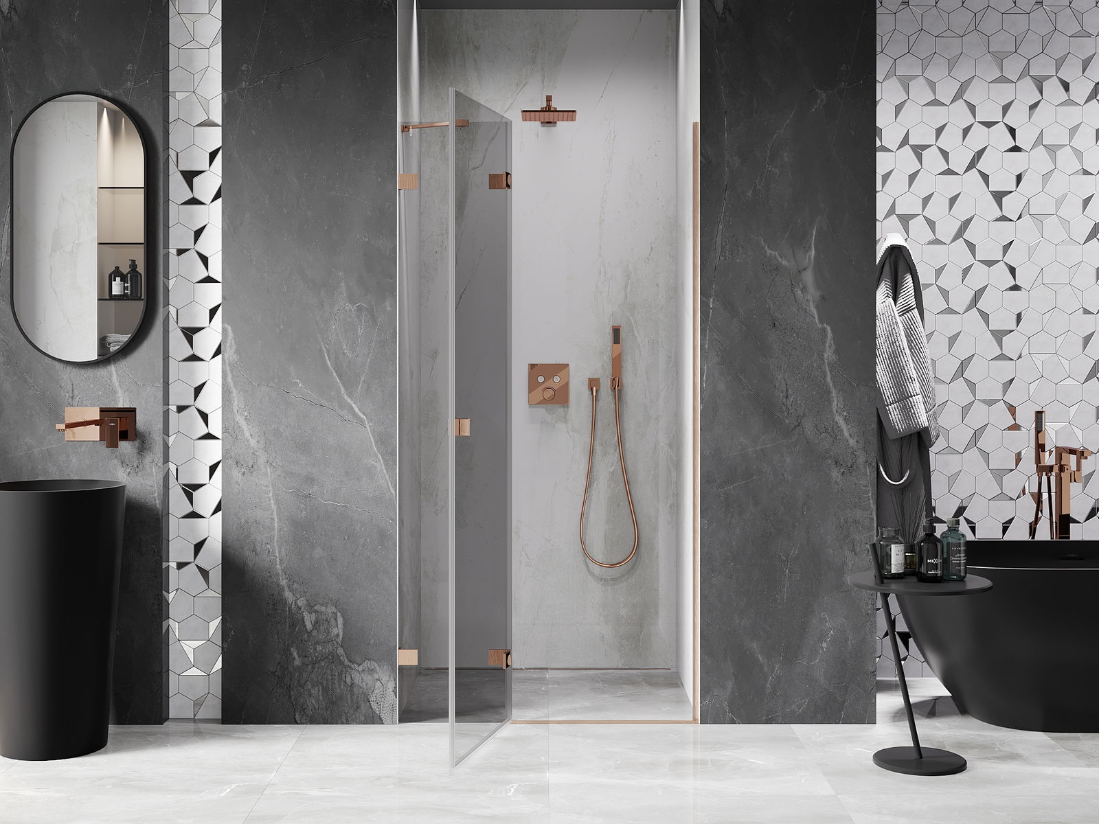 Mexen Lunar left hinged shower door 70 cm, transparent, brushed copper - 834-070-000-65-00-L