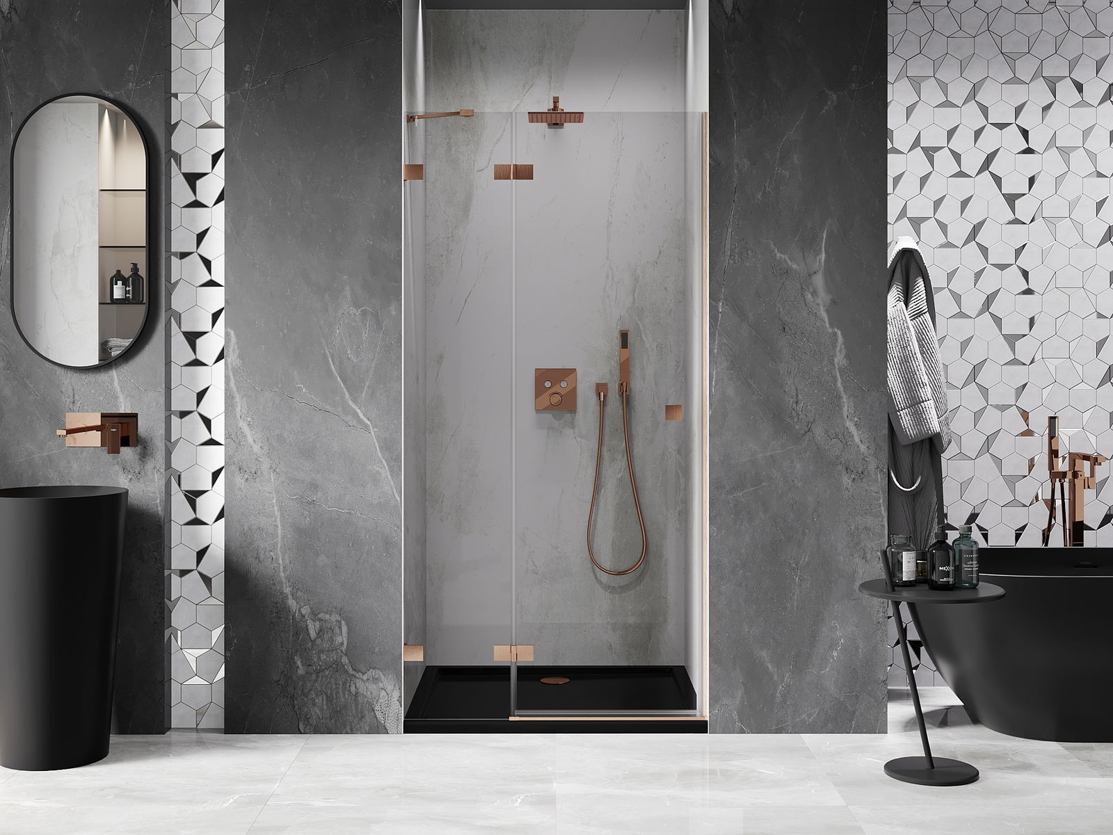 Mexen Lunar Left Hinged Shower Door 85 cm, Transparent, Brushed Copper - 834-085-000-65-00-L