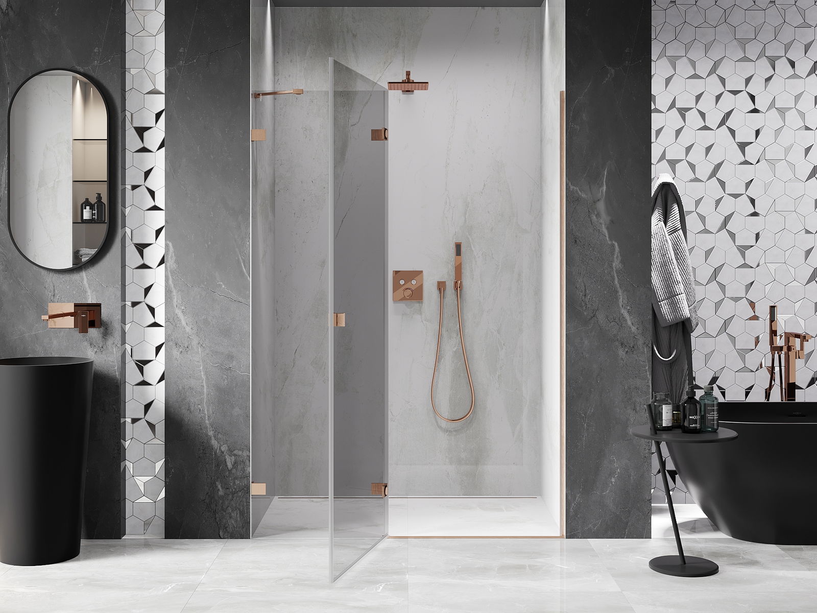Mexen Lunar left swinging shower door 140 cm, transparent, brushed copper - 834-140-000-65-00-L