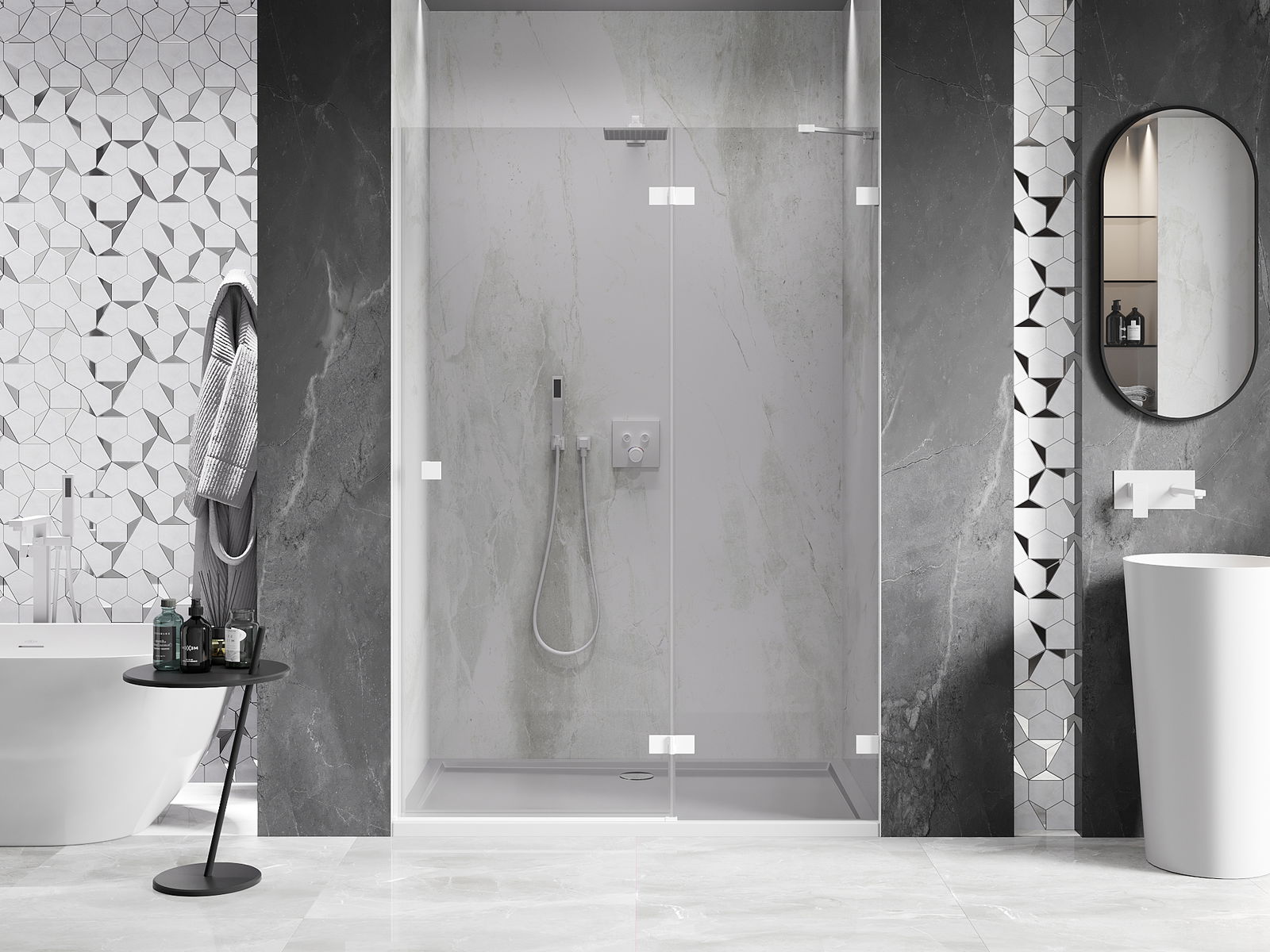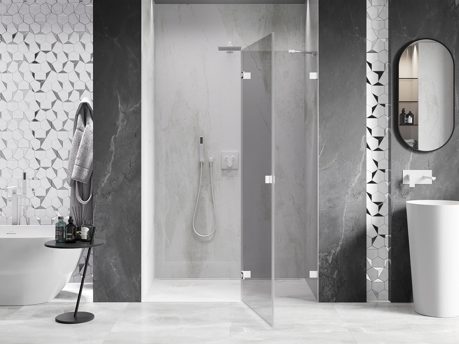 A handy and comfortable handle made from durable and resistant metal. Its trendy shape combined with a finish matched to the colour of the profiles gives the whole a modern and stylish look, highlighting the aesthetics of every bathroom.