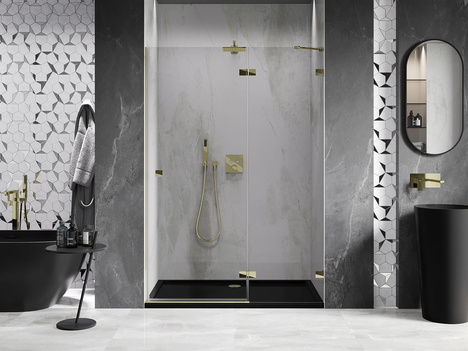 Mexen Lunar Right-Hand 135 cm Pivot Shower Door, Transparent, Gold - 834-135-000-50-00-P