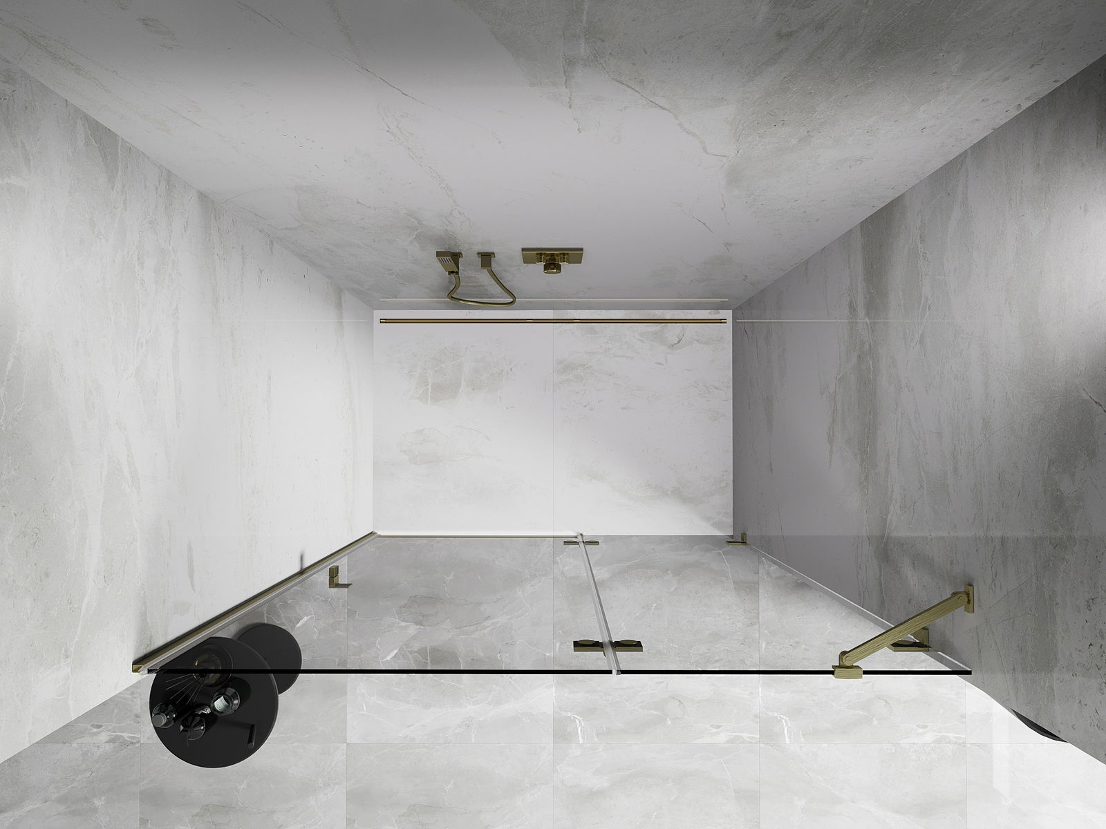 Mexen Lunar right-hinged shower door 135 cm, transparent, brushed gold - 834-135-000-55-00-P