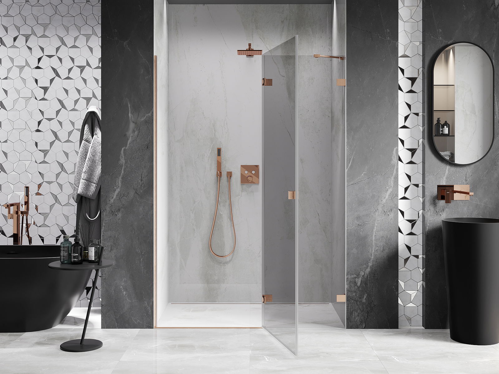 Mexen Lunar shower door hinged right 130 cm, transparent, brushed copper - 834-130-000-65-00-P