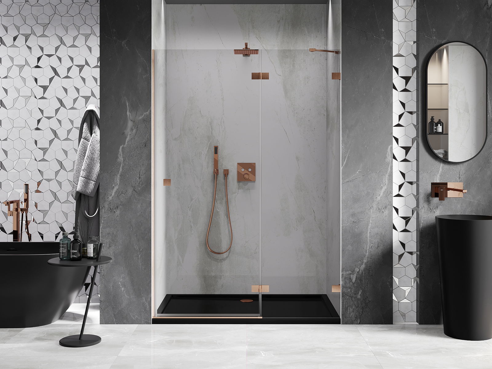 Mexen Lunar Right-Swing Shower Door 135 cm, Transparent, Brushed Copper - 834-135-000-65-00-P