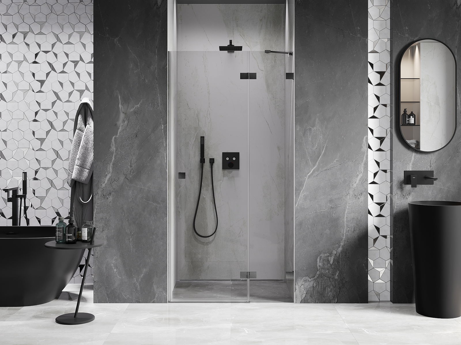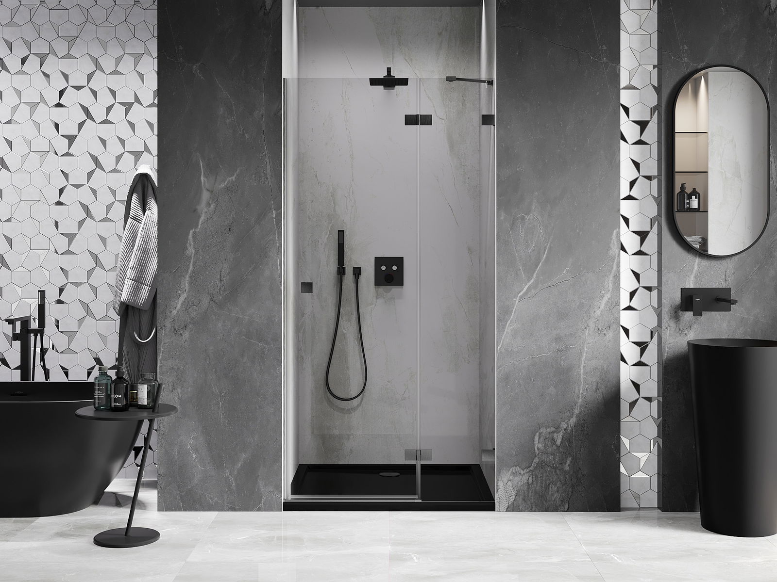 A handy and comfortable handle made from durable and resistant metal. Its trendy shape combined with a finish matched to the colour of the profiles gives the whole a modern and stylish look, highlighting the aesthetics of every bathroom.