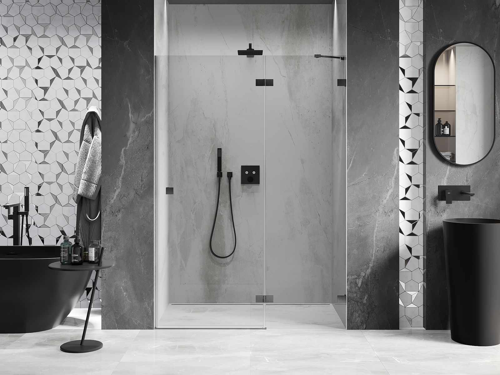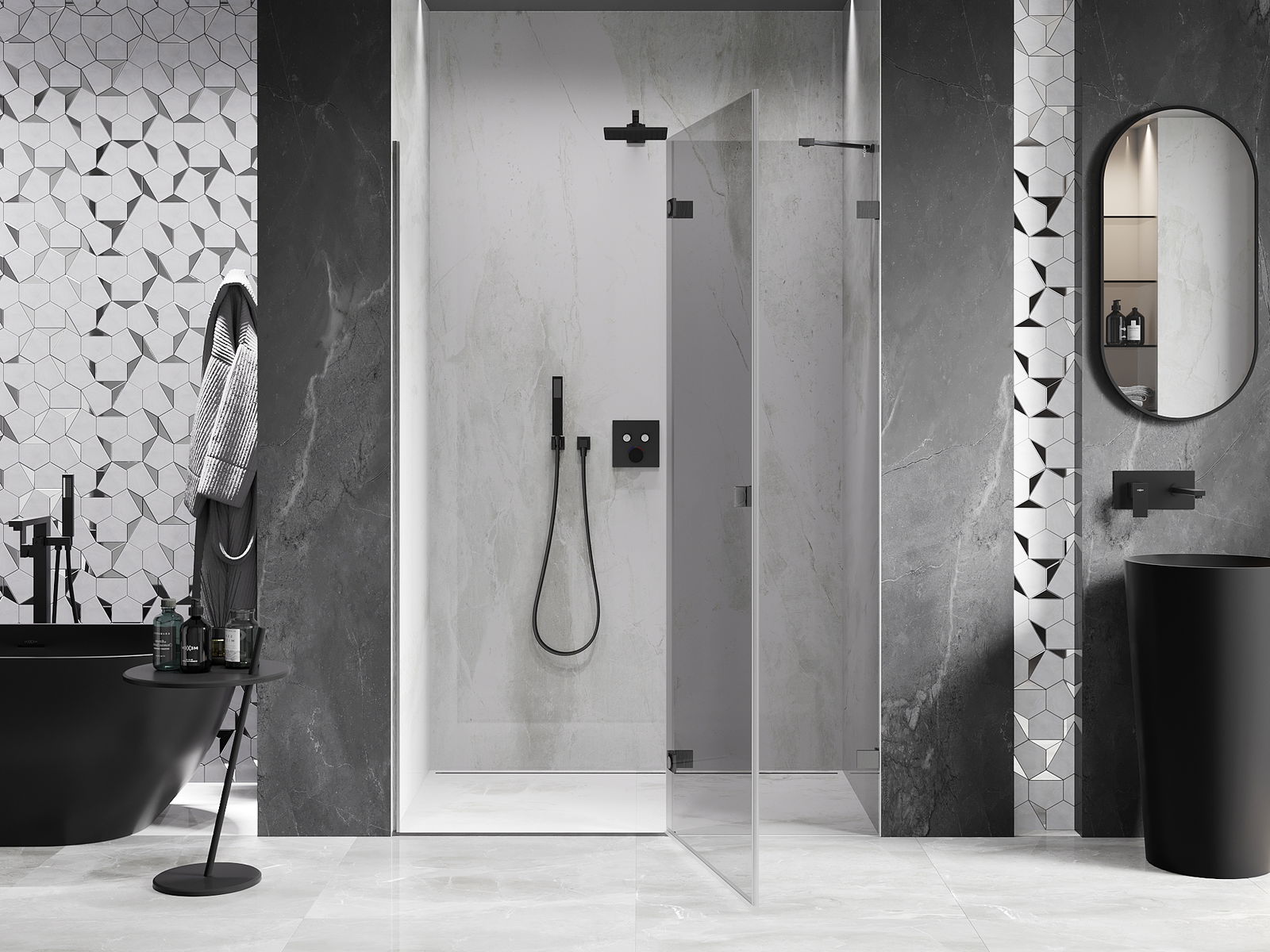 A handy and comfortable handle made from durable and resistant metal. Its trendy shape combined with a finish matched to the colour of the profiles gives the whole a modern and stylish look, highlighting the aesthetics of every bathroom.