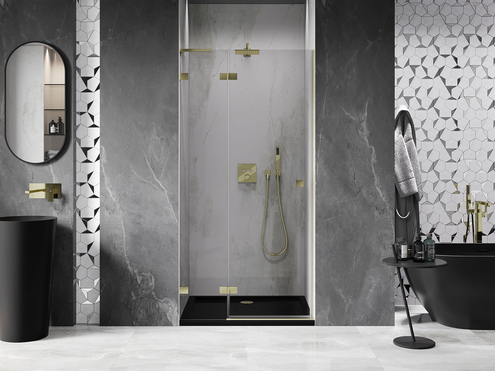 Mexen Lunar L left hinged shower door 85 cm, transparent, brushed gold - 834L-085-000-55-00-L