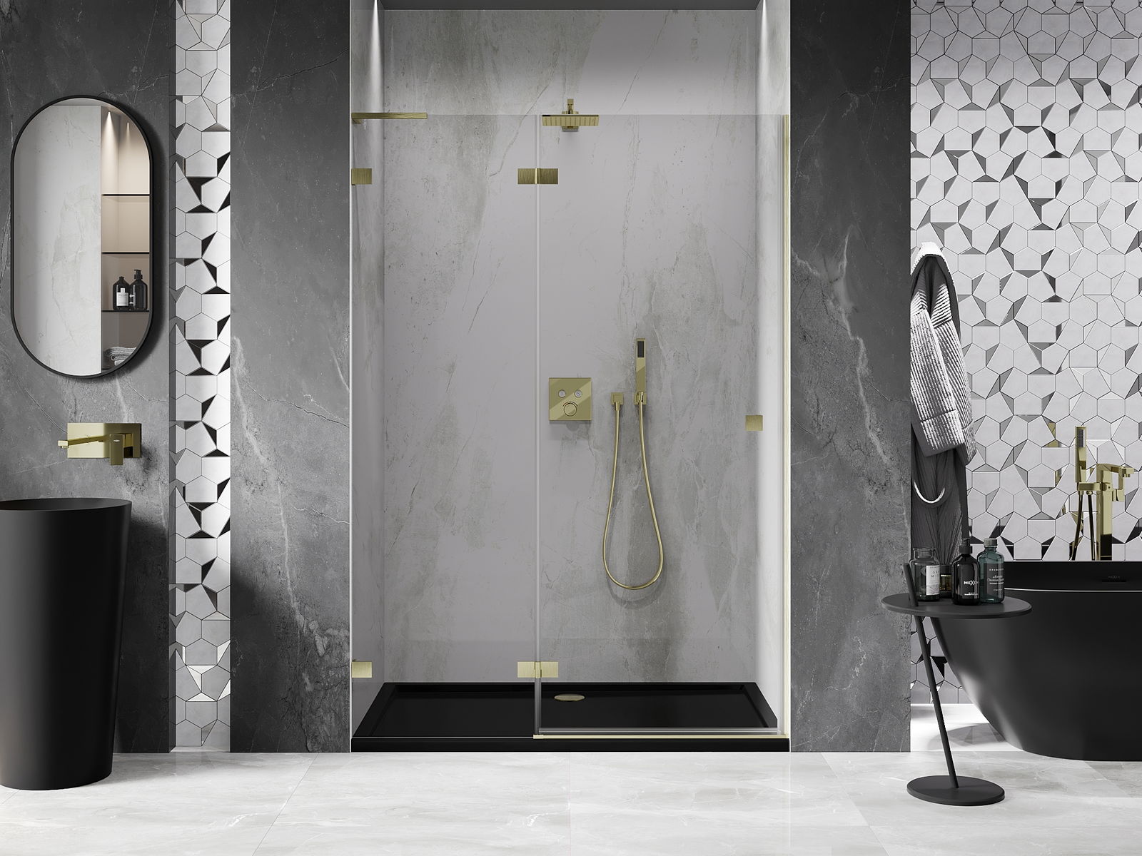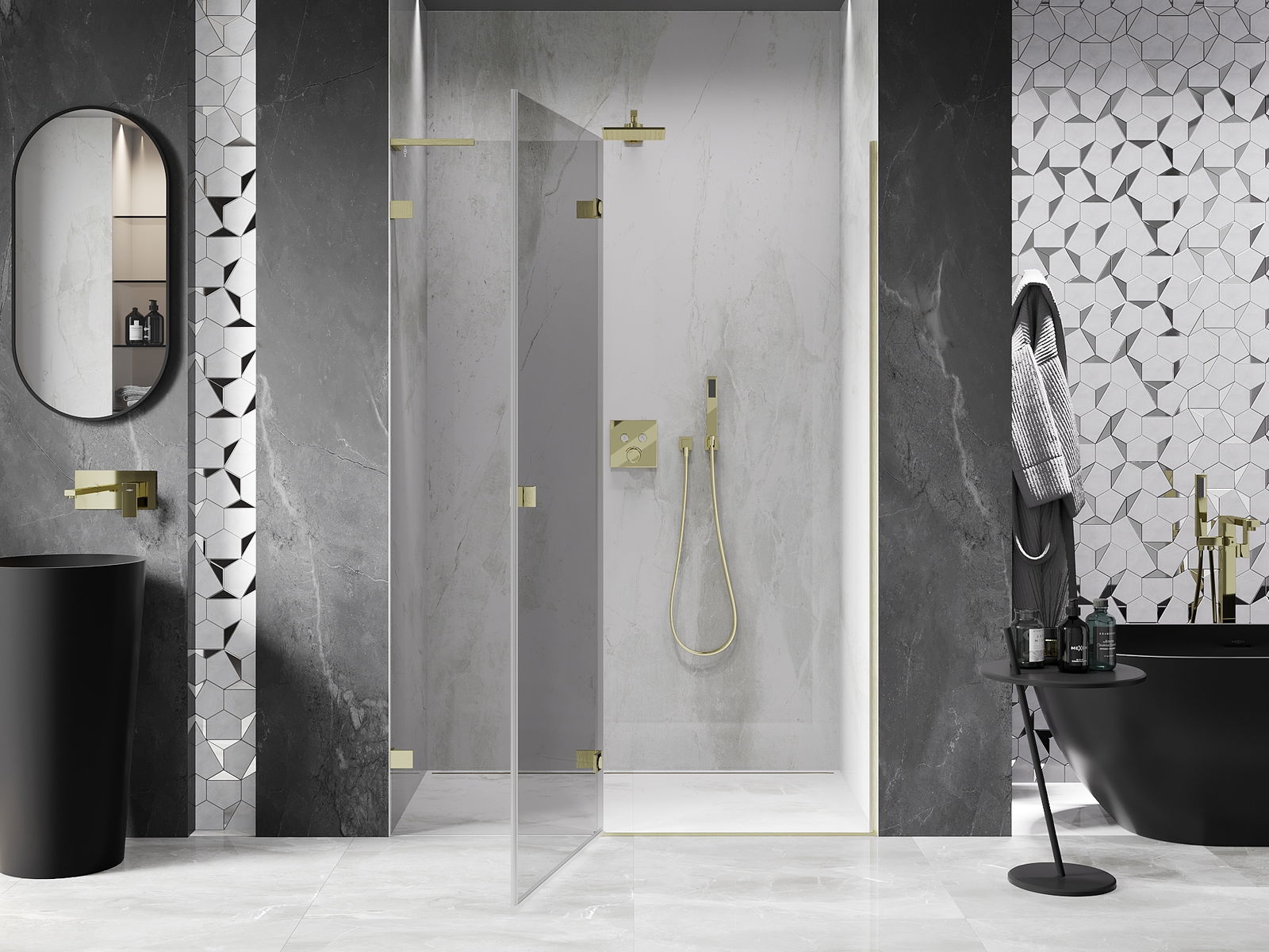 Mexen Lunar L left-side hinged shower door 130 cm, transparent, brushed gold - 834L-130-000-55-00-L