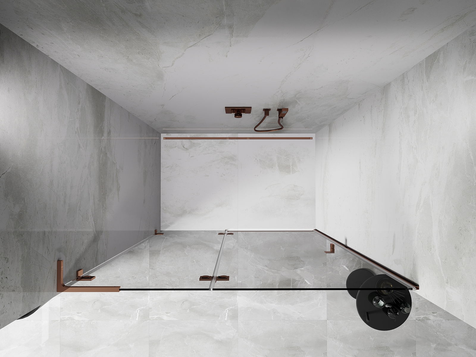 Mexen Lunar L shower door hinged left 135 cm, transparent, rose gold - 834L-135-000-60-00-L