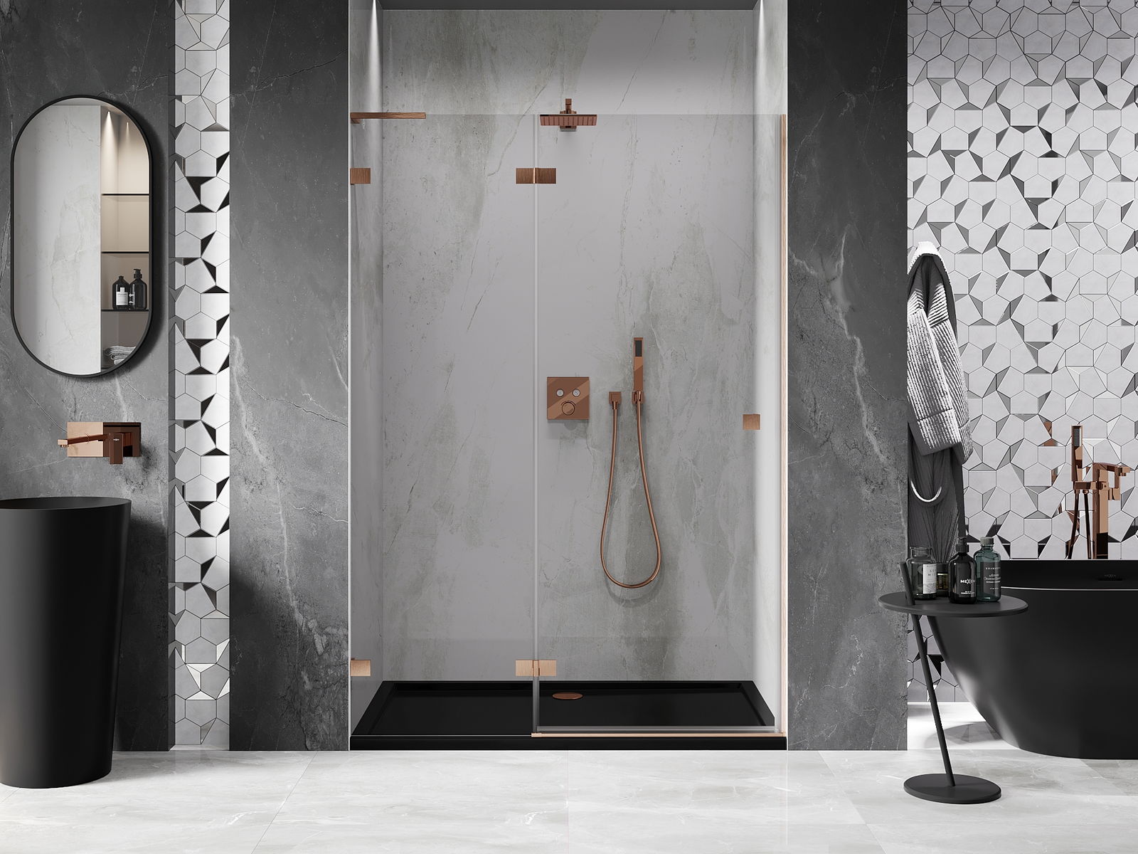 Mexen Lunar L Left-Hand Swinging Shower Door 140 cm, Transparent, Brushed Copper - 834L-140-000-65-00-L
