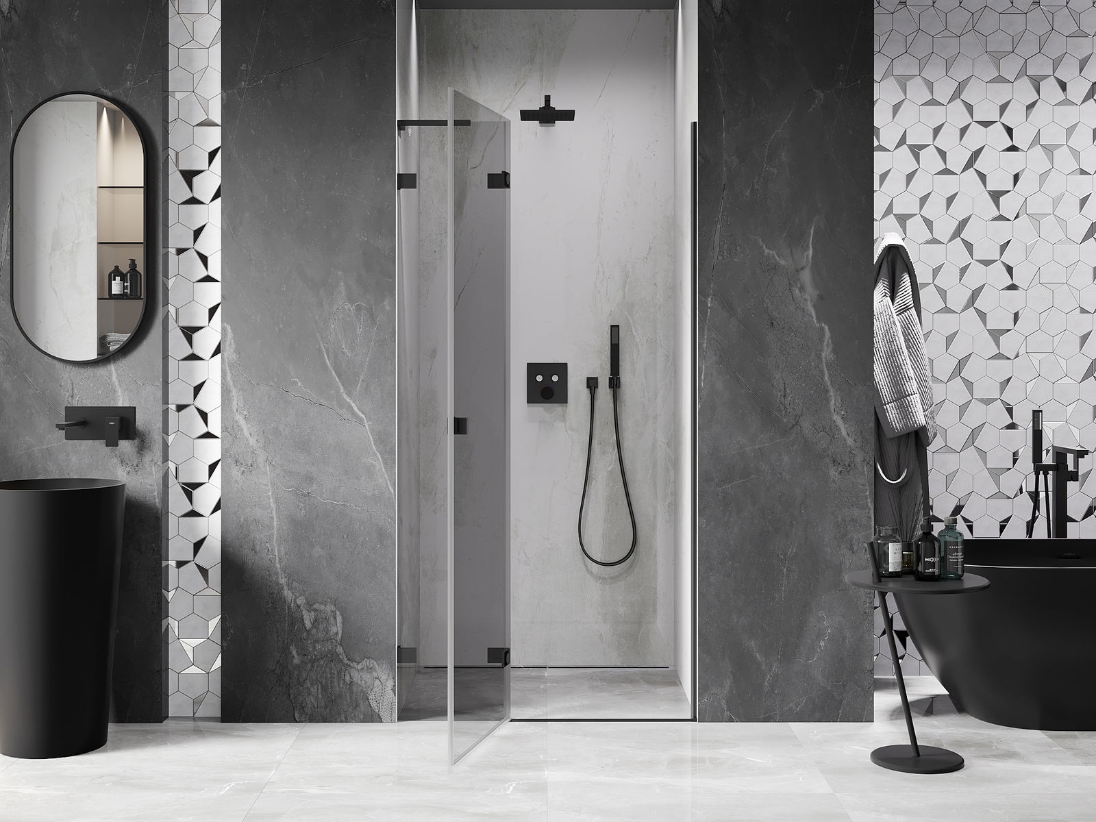 Mexen Lunar L left hinged shower door 100 cm, transparent, black - 834L-100-000-70-00-L