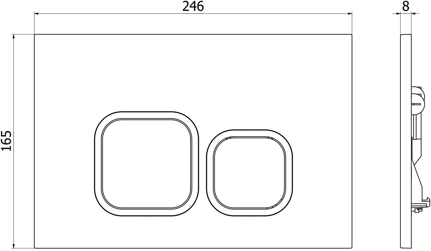 The button is designed for surface-mounted frames where the installation point is located at the front of the structure. This positioning ensures easy access and convenient flushing operation.
