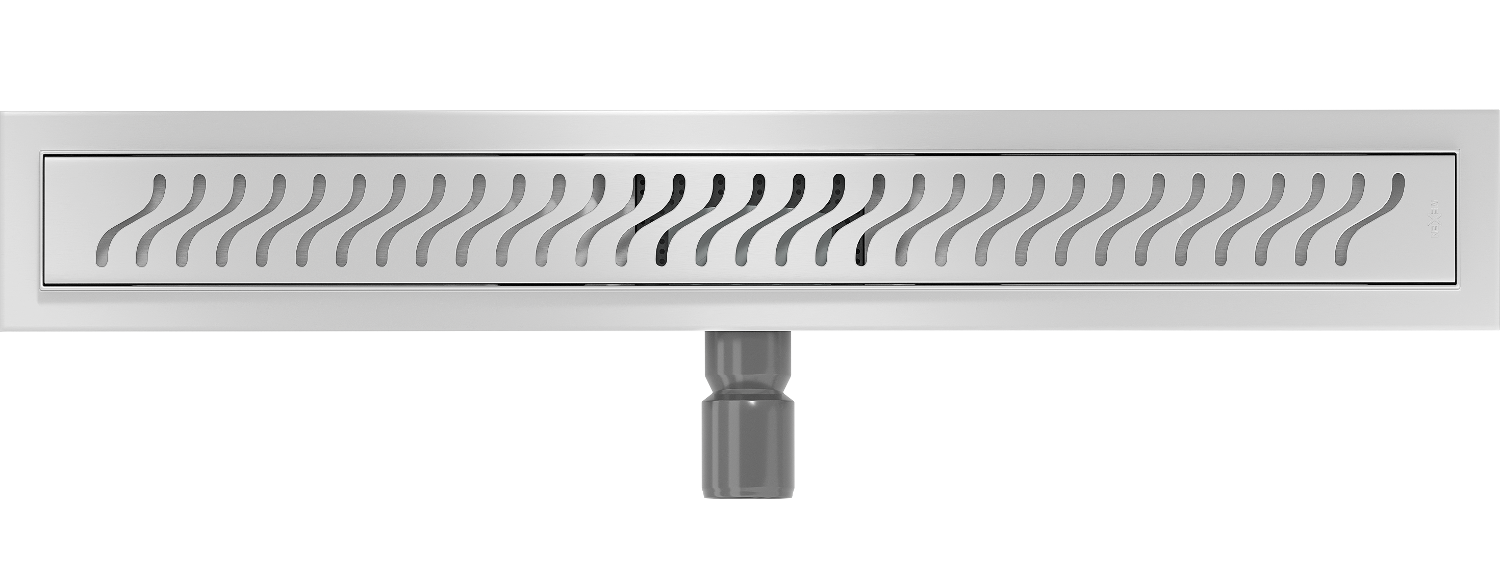 The linear drain is mounted at a depth of only 52 mm. The shallow depth allows for easier preparation of the surface for the drain installation and easy leveling, ensuring high aesthetics and effective water drainage.