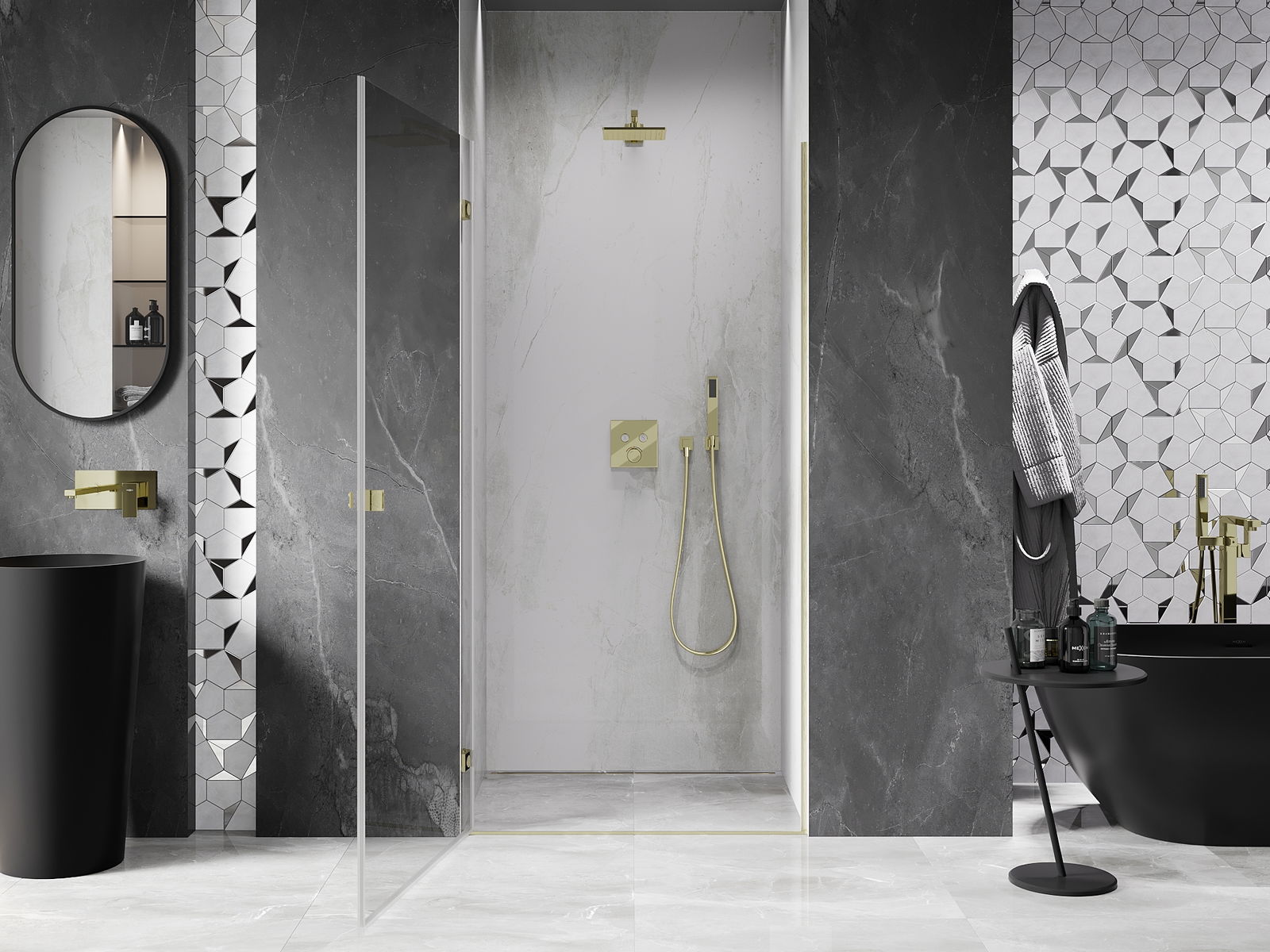 Mexen Lunar-B 65 cm Left Hinged Shower Door, Transparent, Brushed Gold - 832-065-000-55-00-L