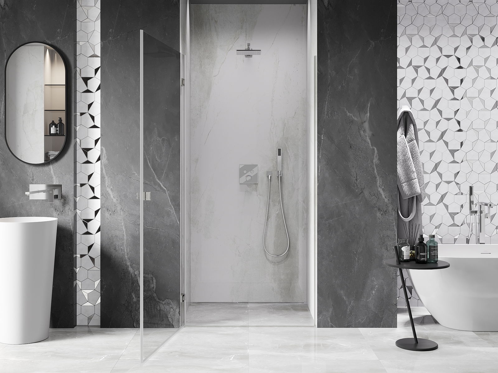 A handy and comfortable handle made from durable and resistant metal. Its trendy shape combined with a finish matched to the colour of the profiles gives the whole a modern and stylish look, highlighting the aesthetics of every bathroom.
