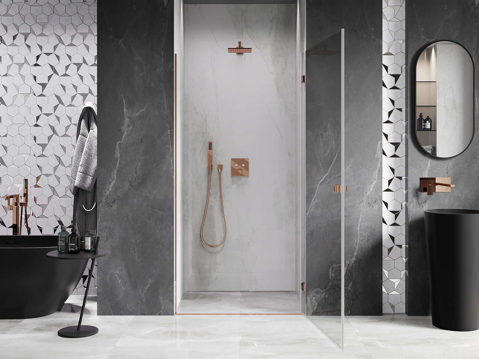 Mexen Lunar-B right-hand pivot shower door 70 cm, transparent, rose gold - 832-070-000-60-00-P