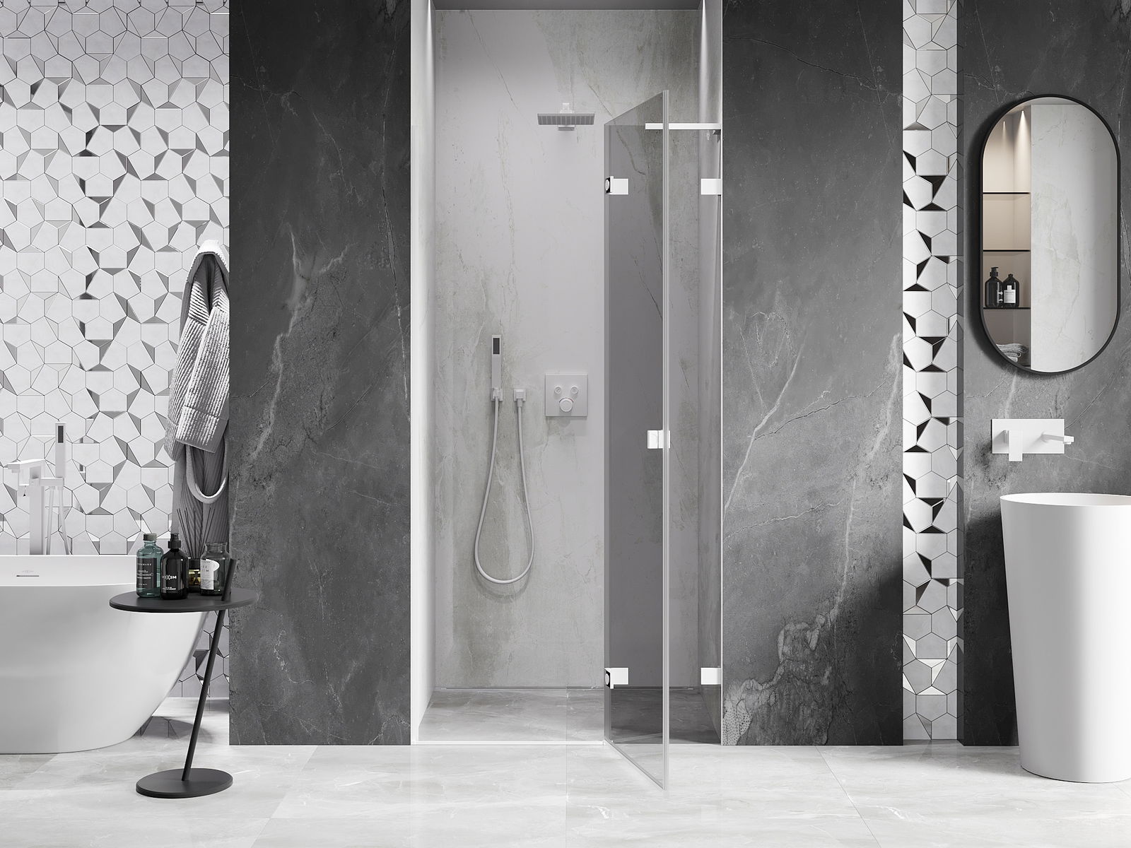 Mexen Lunar L right-side hinged shower door 105 cm, transparent, white - 834L-105-000-20-00-P