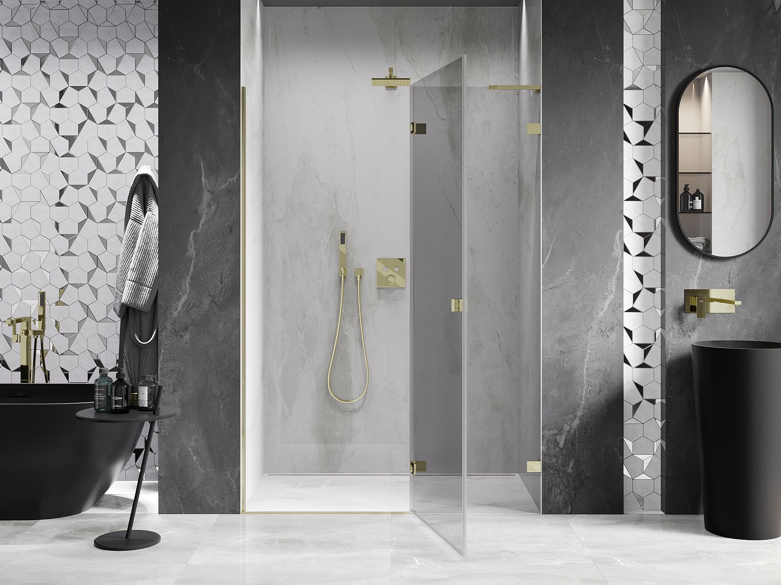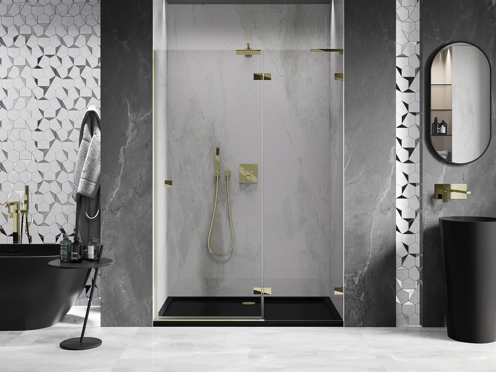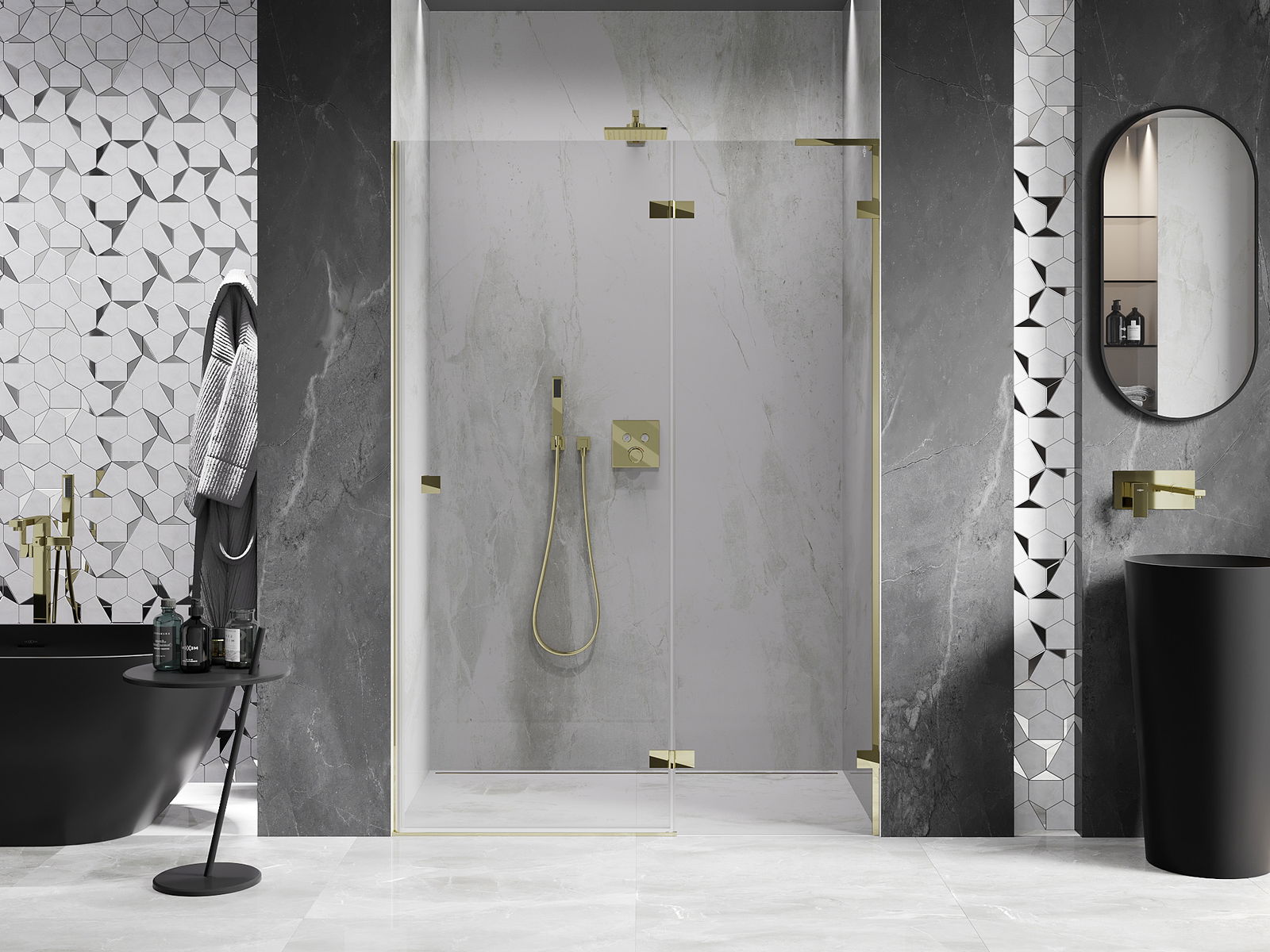 Mexen Lunar L 140 cm Right Hinged Shower Door, Transparent, Gold - 834L-140-000-50-00-P