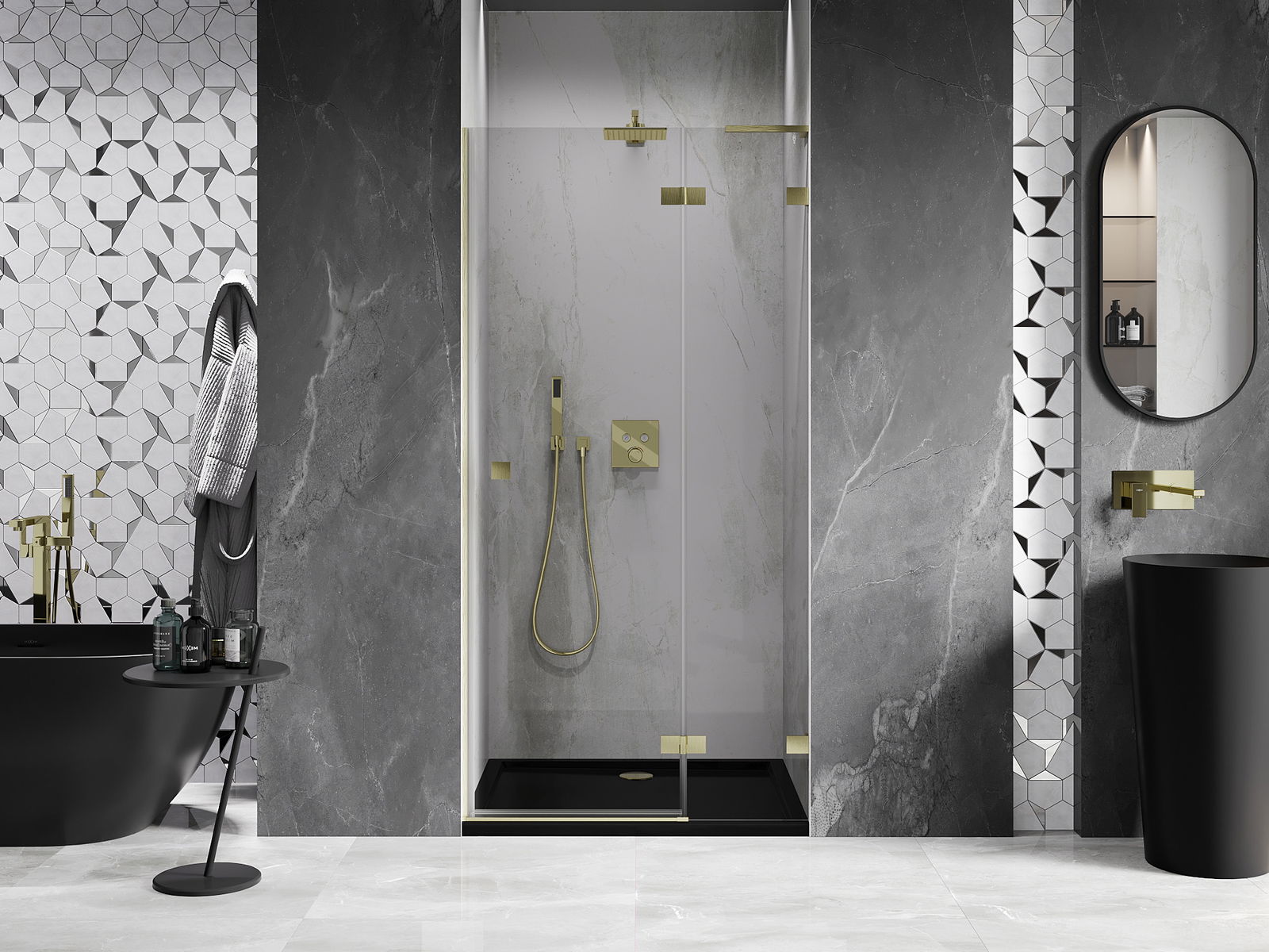 Mexen Lunar L right swing shower door 80 cm, transparent, brushed gold - 834L-080-000-55-00-P