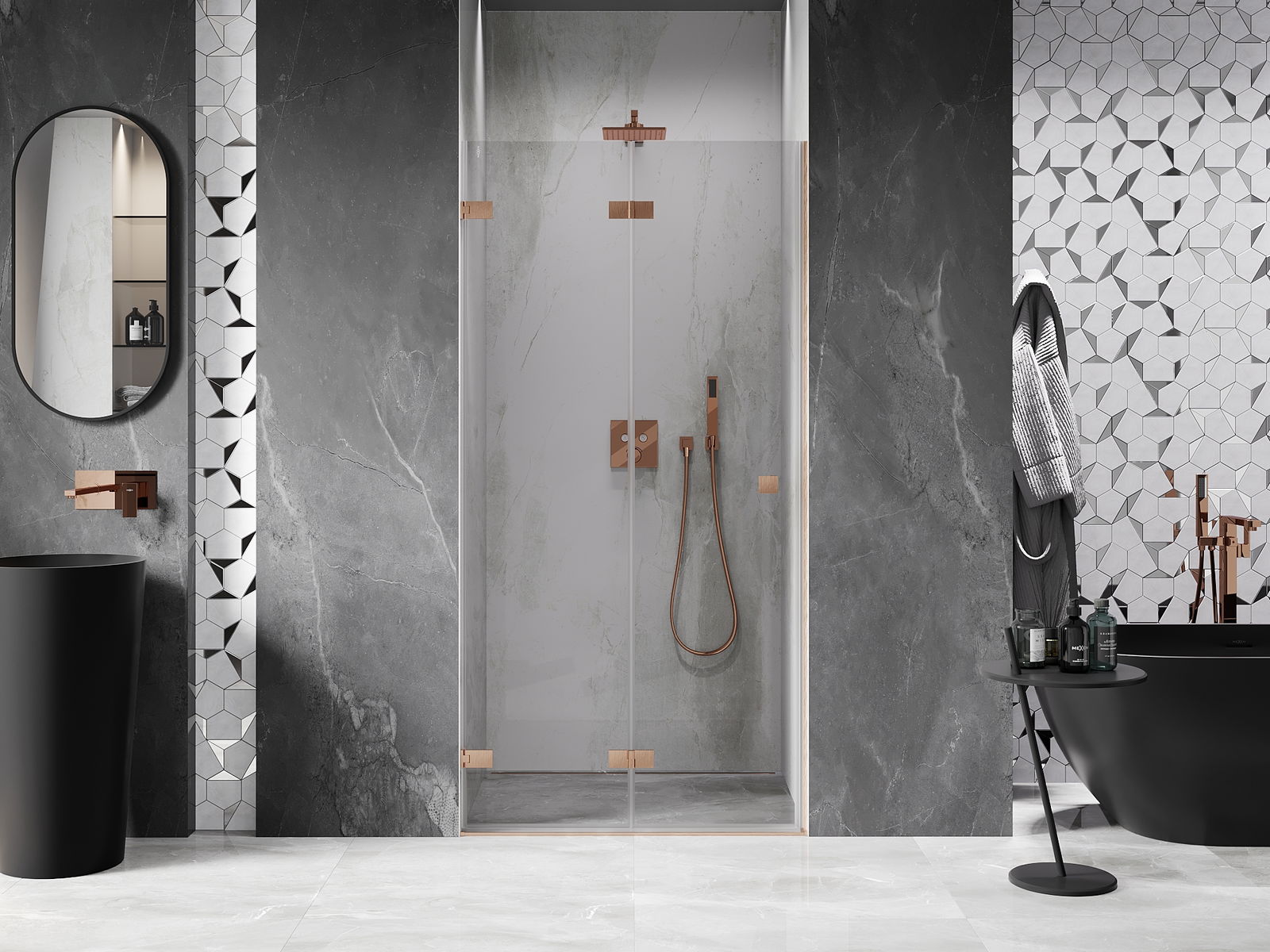 Mexen Lunar-F folding shower door left 95 cm, transparent, brushed copper - 836-095-000-65-00-L