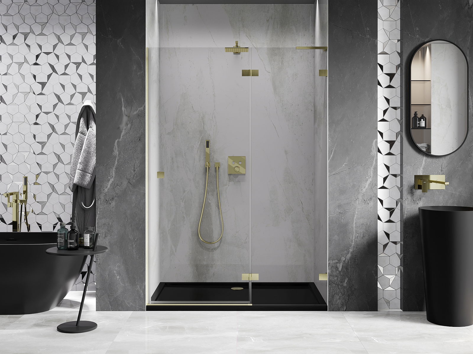 Clamps and hinges are made from very durable brass, additionally creating a flush glass surface. This is an excellent choice that combines elegance, durability, and modern design. Such solutions enhance the aesthetic of the shower while also making it easier to maintain cleanliness.