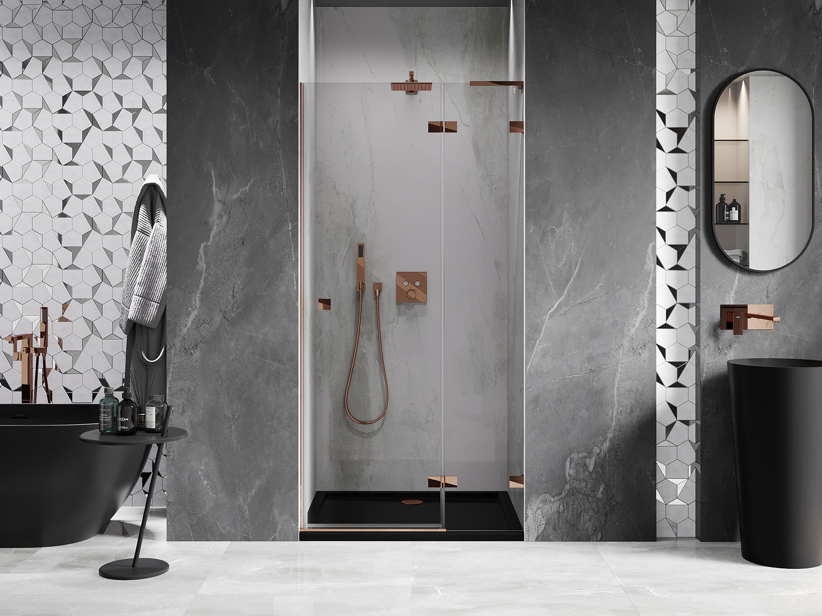 Mexen Lunar L right-hand side shower door 85 cm, transparent, rose gold - 834L-085-000-60-00-P