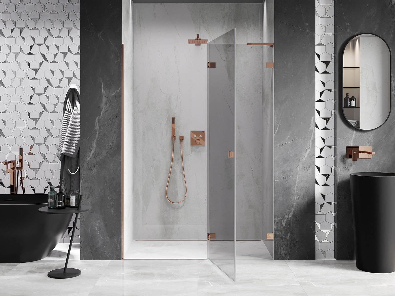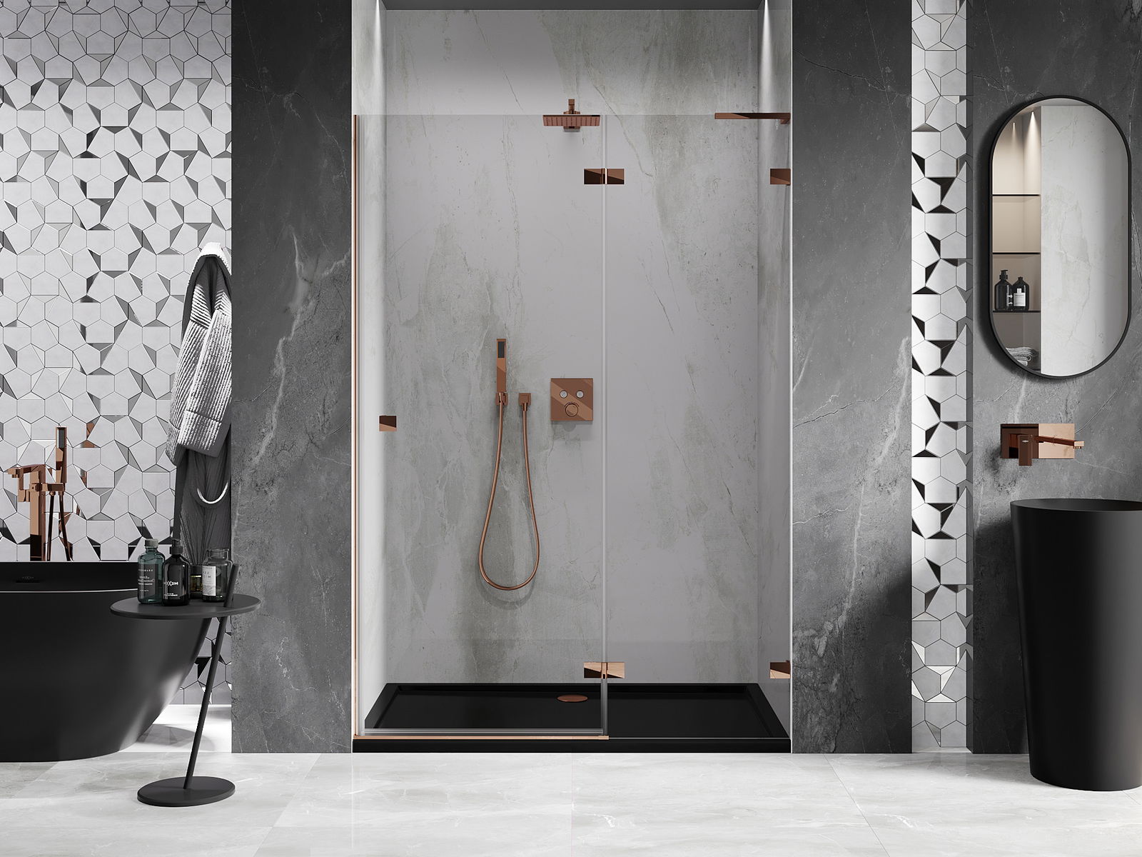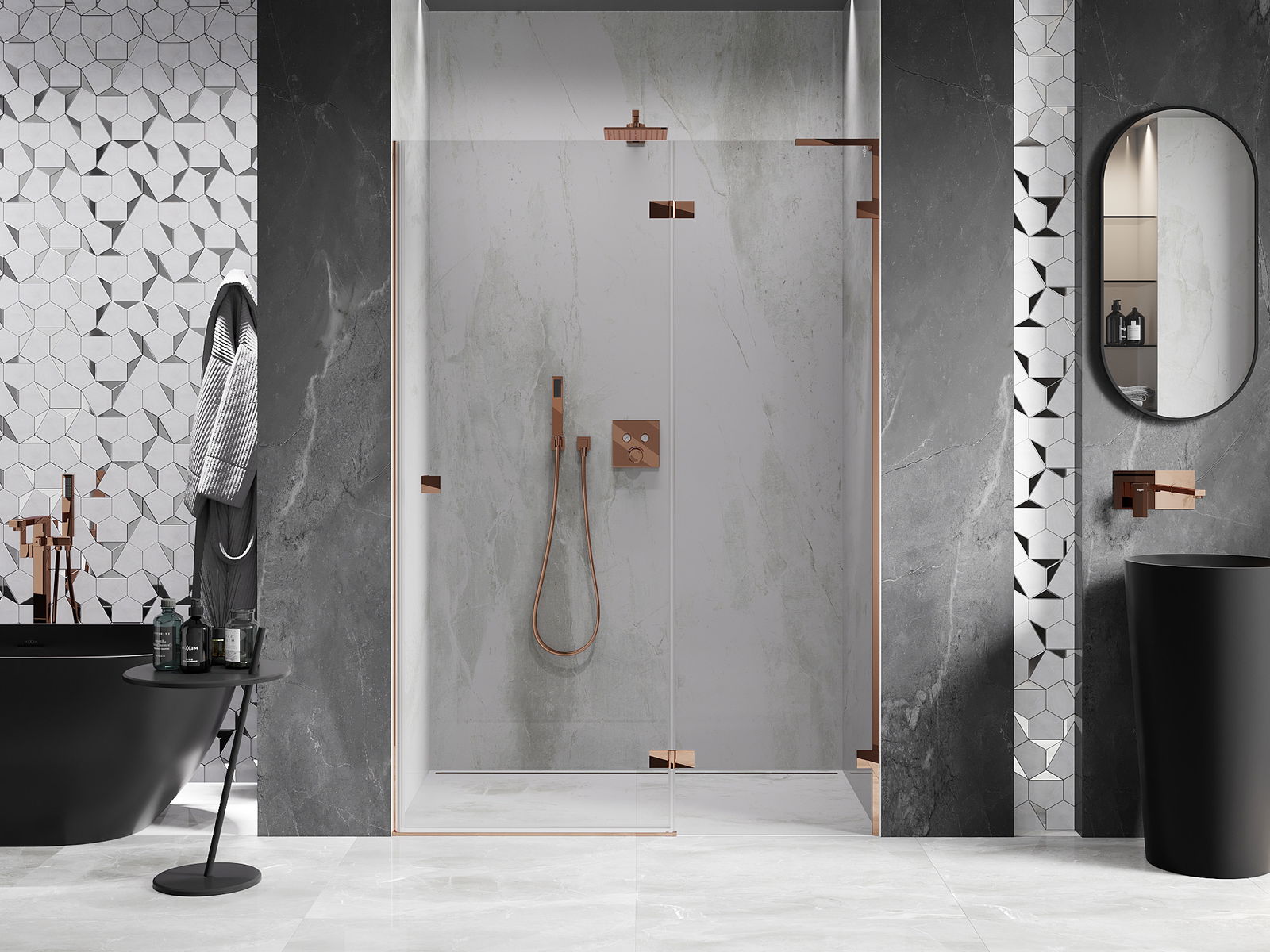 Mexen Lunar L Right Hinged Shower Door 130 cm, Transparent, Rose Gold - 834L-130-000-60-00-P