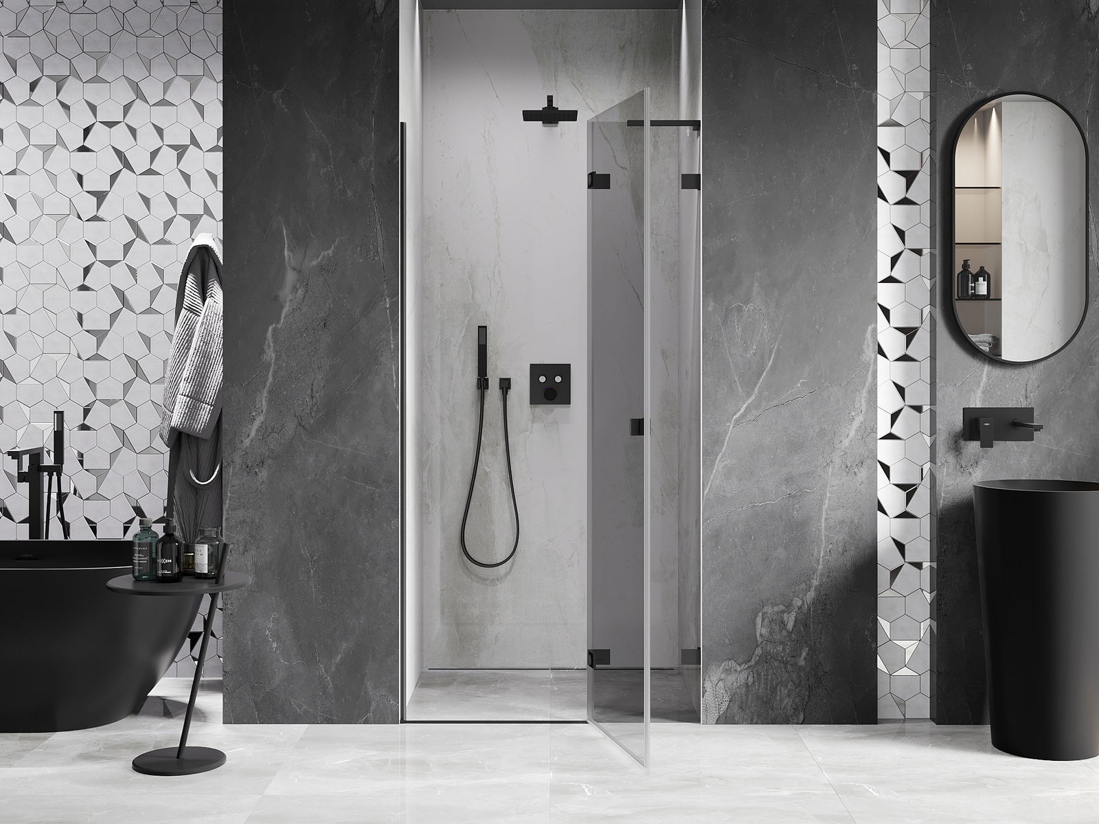Mexen Lunar L 90 cm Right-Handed Hinged Shower Door, Transparent, Black - 834L-090-000-70-00-P