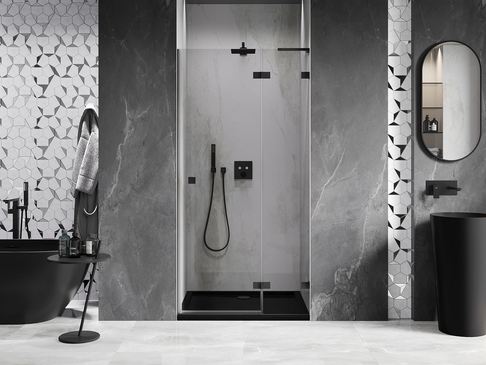 Mexen Lunar L right pivot shower door 100 cm, transparent, black - 834L-100-000-70-00-P