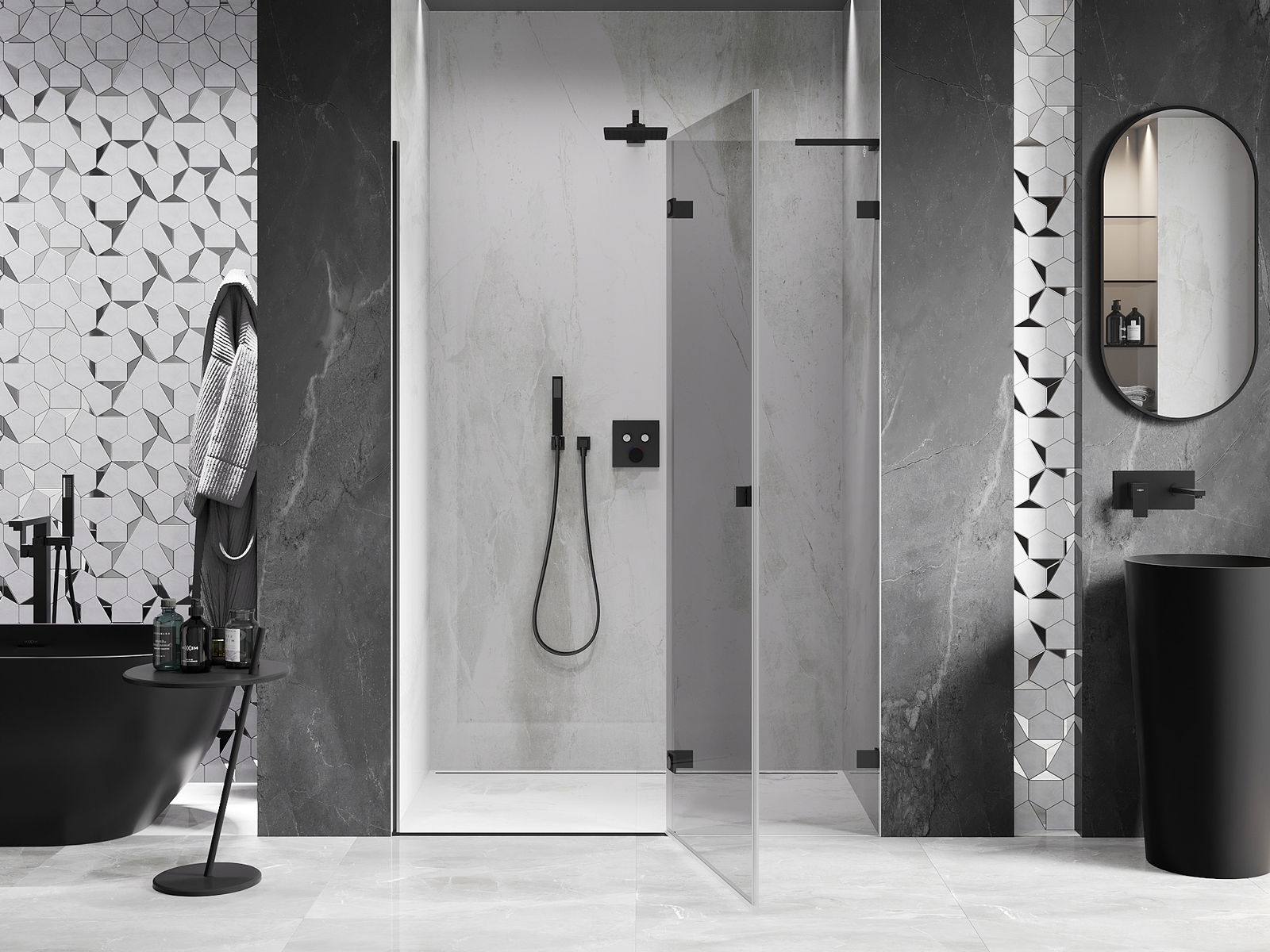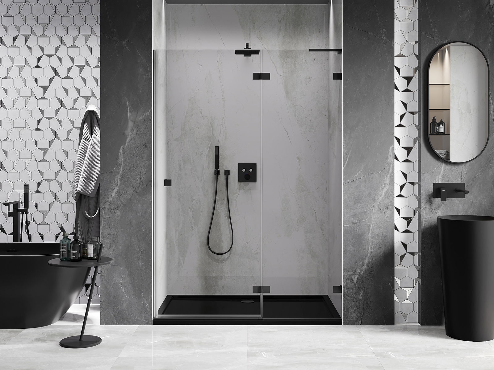 Mexen Lunar L right-hand hinged shower door 130 cm, transparent, black - 834L-130-000-70-00-P