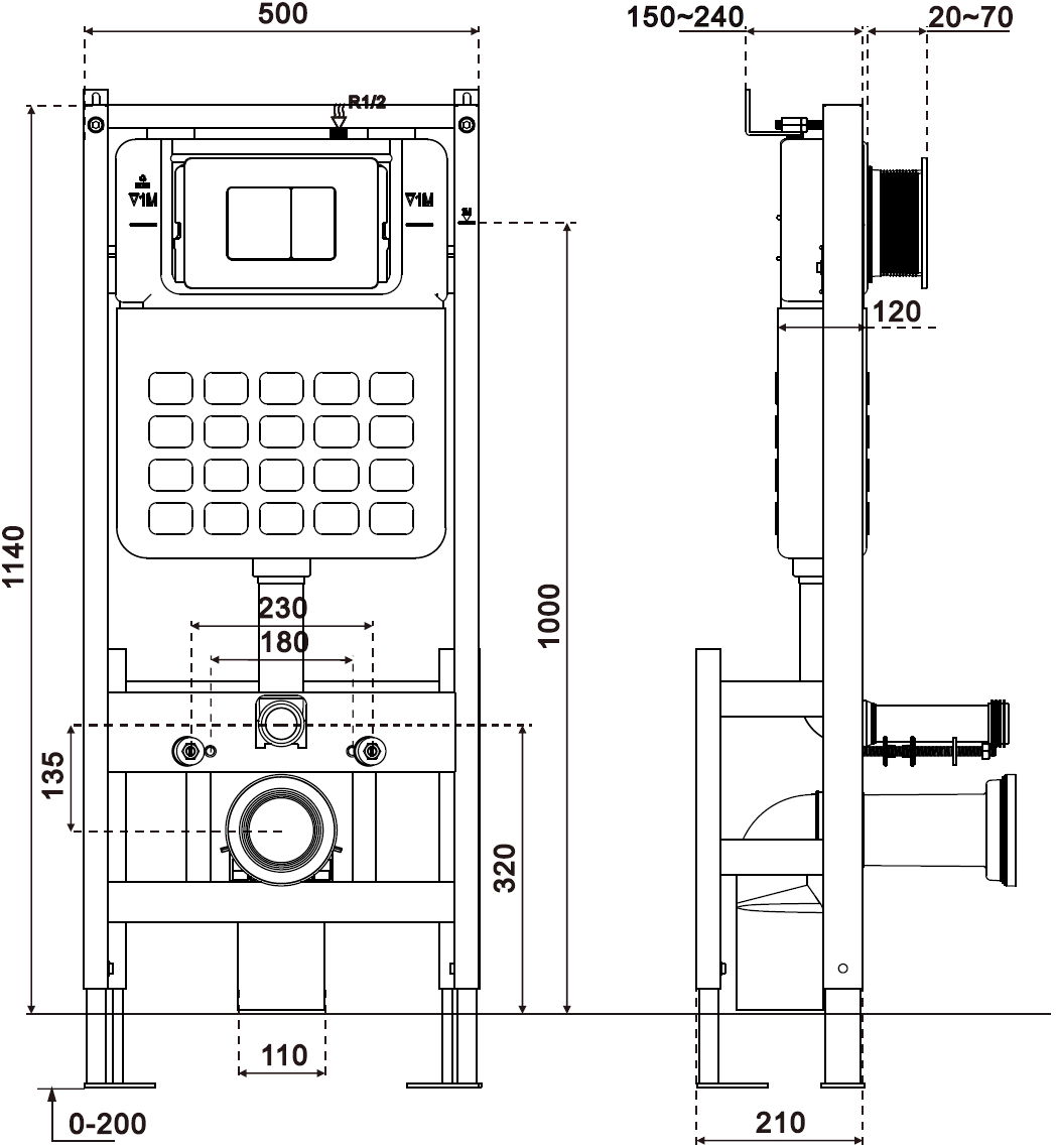Mexen Tex Air F freestanding pneumatic in-wall frame for WC - 61101A