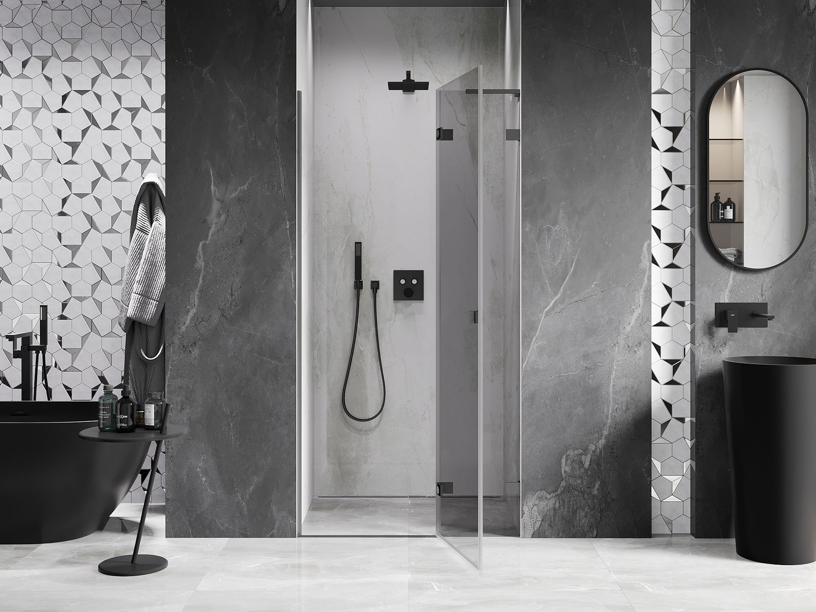 Mexen Lunar L Right Swing Shower Door 80 cm, Transparent, Gun Metal - 834L-080-000-95-00-P
