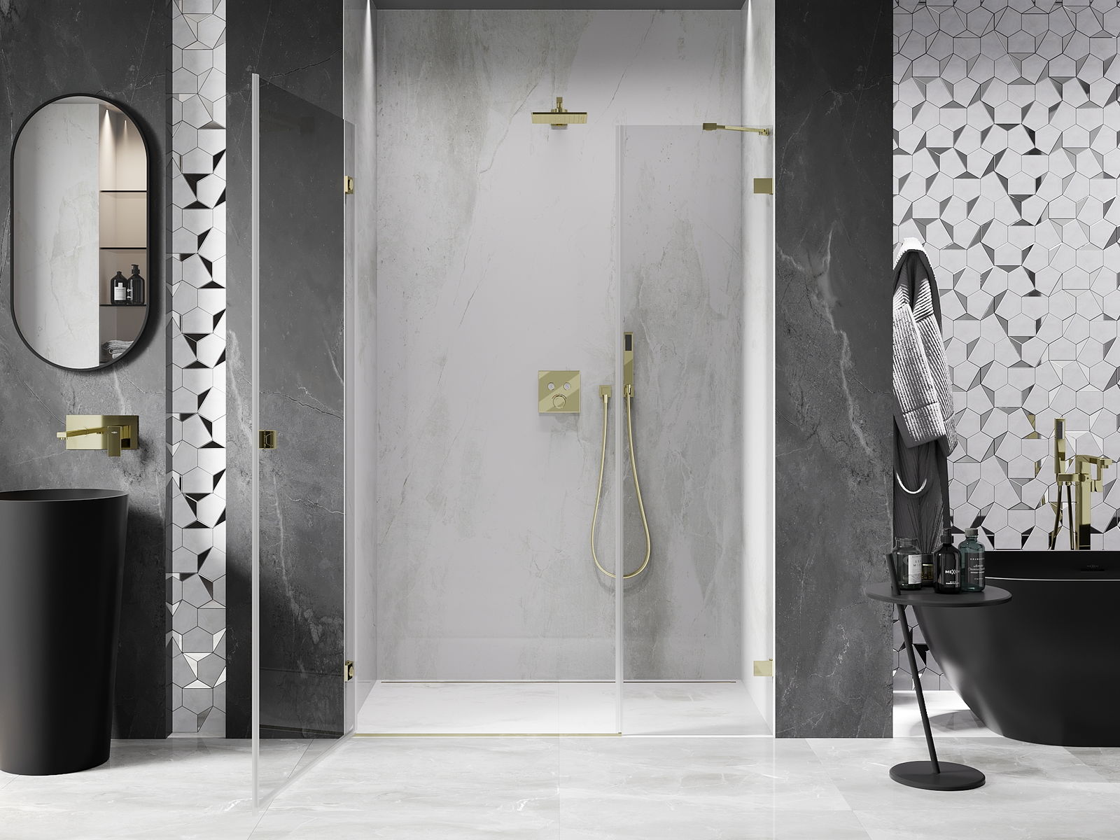The brackets are made from very durable brass and additionally create a flush glass pane. This is an excellent choice that combines elegance, durability, and modern design. Such solutions enhance the aesthetic of the shower and at the same time make it easier to maintain cleanliness.